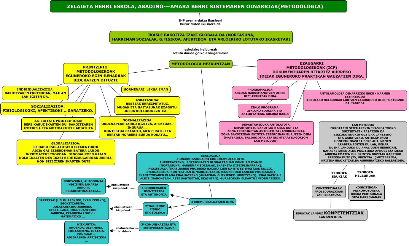 Este Cmap, tiene información relacionada con: Zelaieta Herri Eskola ( Amara Berri metodologia ) -2, METODOLOGIA HEZKUNTZAN ???? EBALUAZIOA -HONAKO EZAUGARRI EDO IRIZPIDEAK DITU: AURRERATZEKO, PERTSONAREN GLOBALTASUAN KONTUAN IZANIK (NORTASUNA, HARREMAN SOZIALAK, IKASKETA DISZIPLINARRAK), PROZESUALA (IKASLEAREN PROZESUA BALORATZEN DA ETA EZ EMAITZAK SOILIK, ETENGABEKOA, KONTESTUAN OINARRITUTAKOA (EGUNEROKO LANEKO PROZESUAN) IKASTETXEAREN PLANA EBALUATZEKO (AMAIERAN GUTXIENEZ, HOBETZEKO). EBALUAZIOA 3 ALDIZ (GABONETAN, ASTE SANTUETAN, EKAINEAN), GURASOEKIN ELKARTU INFORMATZEKO., 3 EREMU EBALUATZEN DIRA ???? 2ºINGURUNE FISIKO ETA SOZIALA, LAN METODOA ERROTAZIO SITEMAREKIN IKASLEA TXOKO GUZTIETATEK PASATZEN DA ZIKLOKO EDUKIN GUZTIAK LANTZEKO ETA GARATZEKO. ANTOLAMENDU HONEKIN IKASLEA BERE AHALMENEN ARABERA EGITEN DU LAN, BEHAR DUENA LANDUKO DU AHAL DUEN NEURRIAN, NAHASKETAREN ALDE POSITIBOA APROBETXATZEKO AUKERA EMATEN DU, EKINTZA GUZTIAK KANPOKO IRTEERA DUTE (TV, PRENTSA...)MOTIBAZIOA, KRITIKA ERAIKITZAILEA AURRERATZEKO BALIABIDEA. ???? DEPARTAMEDUKA ANTOLATUTA. DEPARTAMETU BAKOITZA = GELA BAT ETA ZONA EZERDINETAN ANTOLATUTA (4NORMALENA). ZONA BAKOITZEAN:EKINTZA EZBERDINAK BURUTZEN DIRA (MATERIALA, BALIABIDEAK ETA EKINTZARI DAGOKION LAN METODOA)., EZAUGARRI METODOLOGIKOAK (ICP) DOKUMENTUAREN BITARTEZ AURREKO IDEIAK EGUNEROKO PRAKTIKAN GAUZATZEN DIRA. ???? PROGRAMAZIOA: ARLOAK HARREMANATZEN DIREN BIZI-EKINTZAK DIRA., EZAUGARRI METODOLOGIKOAK (ICP) DOKUMENTUAREN BITARTEZ AURREKO IDEIAK EGUNEROKO PRAKTIKAN GAUZATZEN DIRA. ???? ZIKLO PROGRAMA ZIKLOKO EDUKIAK ETA AKTIBITATEAK, ARLOKA BARIK, 2ºINGURUNE FISIKO ETA SOZIALA ebaluatzeko irizpideak JARRERAK (HELDUAREKIKO, IKASLEEKIKO), EGOKITZAPENA, JOLASAREKIKO JARRERA, ETXEA, LANA, INGURUAREKIKO JARRERA, EZAGUERA LOGIK.- MATEMATIKO ..., METODOLOGIA HEZKUNTZAN ???? EZAUGARRI METODOLOGIKOAK (ICP) DOKUMENTUAREN BITARTEZ AURREKO IDEIAK EGUNEROKO PRAKTIKAN GAUZATZEN DIRA., EZAUGARRI METODOLOGIKOAK (ICP) DOKUMENTUAREN BITARTEZ AURREKO IDEIAK EGUNEROKO PRAKTIKAN GAUZATZEN DIRA. ???? ANTOLAMOLDEA OINARRIZKO ESKU - HARMEN ESTRATEGIA: -ESKOLAKO HELBURUAK LORTZEN LAGUNDUKO DIEN FUNTSEZKO BALIABIDEA., PRINTZIPIO METODOLOGIKOAK EGUNEROKO EGIN-BEHARRAK BIDERATZEN DITUZTE ???? NORMALIZAZIOA: ORDENAPEAN JARRI: BIZITZA, AFEKTUAK, INGURUA ... KONTESTUA EZAGUTU, MENPERATU ETA BERTAN NORBERE BURUA KOKATU..., ZELAIETA HERRI ESKOLA, ABADIÑO---AMARA BERRI SISTEMAREN OINARRIAK(METODOLOGIA) IHP aren ardatza ikasleari buruz duten ikuskera da IKASLE BAKOITZA IZAKI GLOBALA DA (NORTASUNA, HARREMAN SOZIALAK, G.FISIKOA, AFEKTIBOA ETA ARLOEKIKO LOTUTAKO IKASKETAK), EBALUAZIOA -HONAKO EZAUGARRI EDO IRIZPIDEAK DITU: AURRERATZEKO, PERTSONAREN GLOBALTASUAN KONTUAN IZANIK (NORTASUNA, HARREMAN SOZIALAK, IKASKETA DISZIPLINARRAK), PROZESUALA (IKASLEAREN PROZESUA BALORATZEN DA ETA EZ EMAITZAK SOILIK, ETENGABEKOA, KONTESTUAN OINARRITUTAKOA (EGUNEROKO LANEKO PROZESUAN) IKASTETXEAREN PLANA EBALUATZEKO (AMAIERAN GUTXIENEZ, HOBETZEKO). EBALUAZIOA 3 ALDIZ (GABONETAN, ASTE SANTUETAN, EKAINEAN), GURASOEKIN ELKARTU INFORMATZEKO. ???? 3 EREMU EBALUATZEN DIRA, PRINTZIPIO METODOLOGIKOAK EGUNEROKO EGIN-BEHARRAK BIDERATZEN DITUZTE ???? AKTIBITATE PRINTZIPIOAK: BERE KABUZ IKASTEN DU, BAKOITZAREN INTERESA ETA MOTIBAZIOTIK ABIATUTA, PRINTZIPIO METODOLOGIKOAK EGUNEROKO EGIN-BEHARRAK BIDERATZEN DITUZTE ???? SORMENARI LEKUA EMAN, PRINTZIPIO METODOLOGIKOAK EGUNEROKO EGIN-BEHARRAK BIDERATZEN DITUZTE ???? SOZIALIZAZIOA: FISIOLOGIKOKI, AFEKTIBOKI ...GARATZEKO., PRINTZIPIO METODOLOGIKOAK EGUNEROKO EGIN-BEHARRAK BIDERATZEN DITUZTE ???? GLOBALIZAZIOA: EZ DAGO ISOLATUTAKO ELEMENTURIK ADIB: GAI EZBERDINAK BATERA LANDU INPRIMATEGI TXOKOAN: DINOSAUROEN GAIAN NOLA IDAZTEN DEN IKASI BERE EZAUGARRIAK JARRIZ, NON BIZI ZIREN IKASTEN DUTE ..., PRINTZIPIO METODOLOGIKOAK EGUNEROKO EGIN-BEHARRAK BIDERATZEN DITUZTE ???? INDIBIDUALIZAZIOA: BAKOITZAREN ERRITMOAN, MAILAN LAN EGITEN DA., 3 EREMU EBALUATZEN DIRA ???? 3ºKOMUNIKAZIOA ETA ERREPRESENTAZIOA, IKASLE BAKOITZA IZAKI GLOBALA DA (NORTASUNA, HARREMAN SOZIALAK, G.FISIKOA, AFEKTIBOA ETA ARLOEKIKO LOTUTAKO IKASKETAK) eskolako helburuak lotuta daude goiko ezaugarriekin METODOLOGIA HEZKUNTZAN, KONTZEPTUALAK PROZEDURAZKOAK JARRERAZKOAK ???? EDUKIAK LANDUZ KONPETENTZIAK LANTZEN DIRA, 1ºNORBERAREN IDENTITATEA ETA AUTONOMIA ebaluatzeko irizpideak NORTASUNA, AUTONOMIA HIGIENEA JANARIA ARROPA PSIKOMOTRIZITATEA...