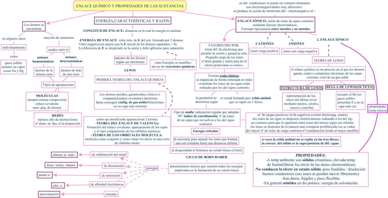 Este Cmap, tiene información relacionada con: CLAUDIA 1, reticular ???? aproximación, átomos de la misma clase ???? Tipos de agrupaciones, PRIMERA TEORÍA DEL ENLACE QUÍMICO: como era insuficiente aparencieron 2 teorías: -TEORÍA DEL ENLACE DE VALENCIA: formación del enlace covalente: apareamiento de los espin y el max solapamiento de los orbitales atómicos -TEORÍA DE LOS ORBITALES MOLÉCULA: molécula como conjunto y como situar los electr en una serie de orbitales molec, ENLACE IÓNICO: unión de iones de signo contrario mediante fuerzas electrostáticas. Formado típicamente entre metales y no metales ANIONES iones con carga negativa, planteamineto teórico que muestra todas las energías implicadas en la formación de un cristal iónico energías de ionización, TEORÍA DE LEWIS 2. ENLACE IÓNICO, 2. ENLACE IÓNICO ENLACE IÓNICO: unión de iones de signo contrario mediante fuerzas electrostáticas. Formado típicamente entre metales y no metales, Tipos de agrupaciones ???? REDES número alto de átomos/iones nº átom. no fijo, sí la proporción, ENLACE QUÍMICO Y PROPIEDADES DE LAS SUSTANCIAS ???? ENLACE IÓNICO: unión de iones de signo contrario mediante fuerzas electrostáticas. Formado típicamente entre metales y no metales, ENLACE IÓNICO: unión de iones de signo contrario mediante fuerzas electrostáticas. Formado típicamente entre metales y no metales FAVORECIDO POR: -Gran dif. de electroneg que permite la cesión y ganancia neta -Pequeña carga de los iones -Catión grande y anión peq así el efecto polarizante es menor., ENERGÍA,CARACTERÍSTICAS Y RAZÓN LONGITUD DE ENLACE: distancia en la cual la energía es mínima, Los átomos se encuentran mayoría de sustancias unidos entre sí, ENERGÍA,CARACTERÍSTICAS Y RAZÓN -ENERGÍA DE ENLACE: valor min. de E del sist. formado por 2 átomos. Valor negativo,(es menor que la E inicial de los átomos separados,= 0). La diferencia de E se desprende en la unión y debe aplicarse para separarlos, -ENERGÍA DE ENLACE: valor min. de E del sist. formado por 2 átomos. Valor negativo,(es menor que la E inicial de los átomos separados,= 0). La diferencia de E se desprende en la unión y debe aplicarse para separarlos uniones de los átomos según sus electrones: LEWIS, de disociación ???? disoc. molec. diatóm., planteamineto teórico que muestra todas las energías implicadas en la formación de un cristal iónico energías de disociación, planteamineto teórico que muestra todas las energías implicadas en la formación de un cristal iónico energías de afinidad electrónicas, -Tipo de malla/ ordenación regular que adoptan -Nº/ índice de coordinación: nº de iones de un signo que envuelven a los del signo contrario -nº de cargas positivas=al de nagativas (crsital electroneg. neutro) -los iones de un signo se disponen simétricamente rodeando a los del sig- no contrario para que la repulsión entre iones del mismo signo sea mínima -los iones se disponen de la manera mas compacta posible(cada ion se rodea del mayor nº de iones de carga contraria-nº coordinación tiende al mayor posible) a veces la celda unidad no se repite en las tres direcc. la estruct. del sólido es la superposición de dif. capas, el enlace químico es un proceso en el que los átomos ganan, ceden o comparten electrones de las capas externas: conf de un gas noble ESTRUCTURA DE LEWIS representación de los electr del último nivel mediante puntos, círulos, cruces o estrellas, TEORÍA DE LEWIS el enlace químico es un proceso en el que los átomos ganan, ceden o comparten electrones de las capas externas: conf de un gas noble