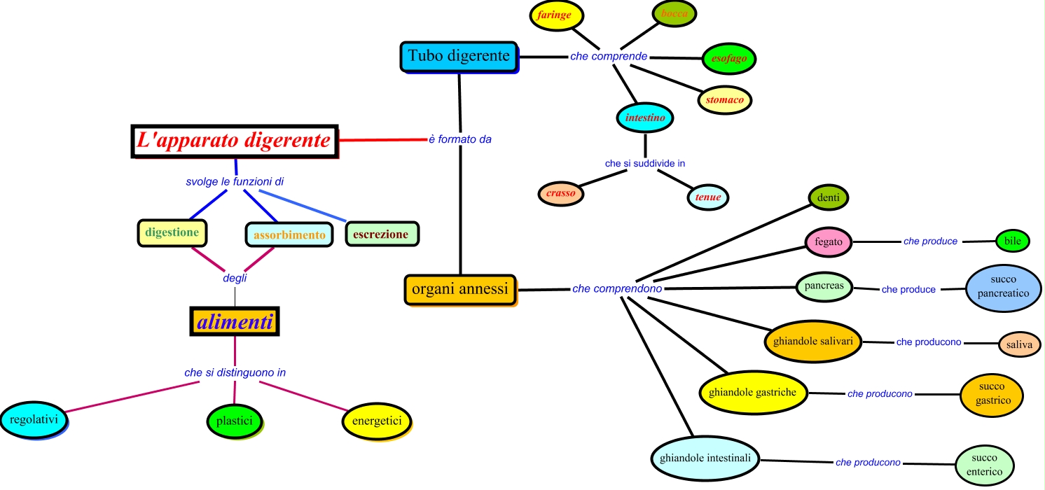 apparato digerente, Tubo digerente che comprende intestino, Tubo digerente che comprende stomaco, pancreas che produce succo pancreatico, organi annessi che comprendono ghiandole salivari, Tubo digerente che comprende bocca, L'apparato digerente è formato da Tubo digerente, Tubo digerente che comprende esofago, organi annessi che comprendono fegato, digestione degli alimenti, alimenti che si distinguono in plastici