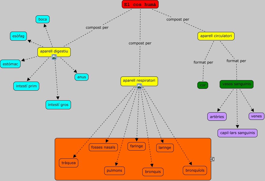 Este Cmap, tiene información relacionada con: el cos humà, aparell circulatori format per cor, aparell digestiu esòfag, aparell digestiu boca, vasos sanguinis venes, aparell respiratori pulmons, aparell respiratori laringe, vasos sanguinis artèries, aparell respiratori bronquis, El cos humà compost per aparell respiratori, aparell digestiu intestí prim, aparell digestiu anus, El cos humà compost per aparell circulatori, vasos sanguinis capil·lars sanguinis, aparell digestiu estómac, aparell respiratori tràquea, aparell circulatori format per vasos sanguinis, aparell respiratori fosses nasals, aparell respiratori faringe, aparell respiratori bronquíols, aparell digestiu intestí gros