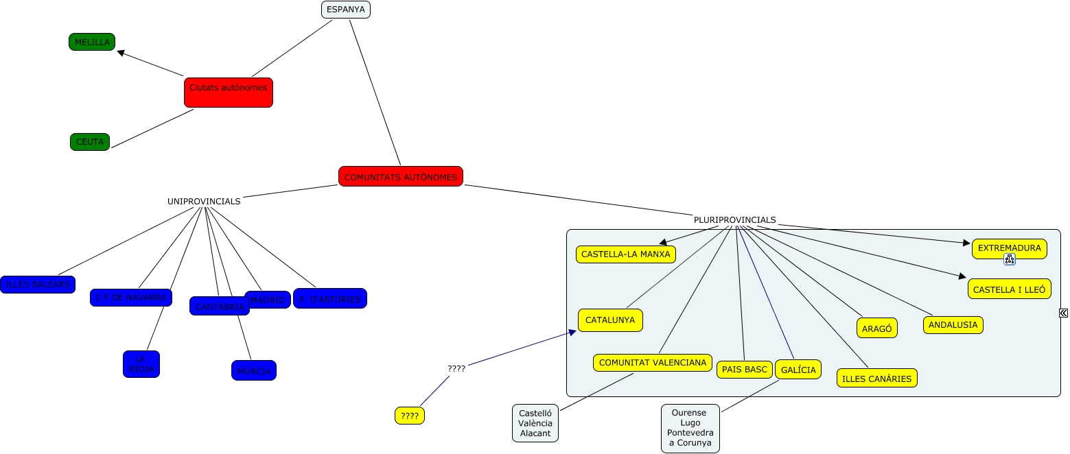 Este Cmap, tiene información relacionada con: Organitzacio territorial, ESPANYA Ciutats autònomes, COMUNITATS AUTÒNOMES UNIPROVINCIALS C F DE NAVARRA, COMUNITATS AUTÒNOMES UNIPROVINCIALS LA RIOJA, COMUNITATS AUTÒNOMES PLURIPROVINCIALS CASTELLA-LA MANXA, GALÍCIA Ourense Lugo Pontevedra a Corunya, COMUNITATS AUTÒNOMES UNIPROVINCIALS ILLES BALEARS, COMUNITAT VALENCIANA Castelló València Alacant, ESPANYA COMUNITATS AUTÒNOMES, COMUNITATS AUTÒNOMES PLURIPROVINCIALS PAIS BASC, ???? ???? CATALUNYA, COMUNITATS AUTÒNOMES PLURIPROVINCIALS ILLES CANÀRIES, COMUNITATS AUTÒNOMES PLURIPROVINCIALS ANDALUSIA, COMUNITATS AUTÒNOMES PLURIPROVINCIALS ARAGÓ, COMUNITATS AUTÒNOMES PLURIPROVINCIALS GALÍCIA, COMUNITATS AUTÒNOMES PLURIPROVINCIALS EXTREMADURA, COMUNITATS AUTÒNOMES PLURIPROVINCIALS CASTELLA I LLEÓ, COMUNITATS AUTÒNOMES UNIPROVINCIALS CANTÀBRIA, COMUNITATS AUTÒNOMES UNIPROVINCIALS MÚRCIA, COMUNITATS AUTÒNOMES PLURIPROVINCIALS COMUNITAT VALENCIANA, COMUNITATS AUTÒNOMES PLURIPROVINCIALS CATALUNYA