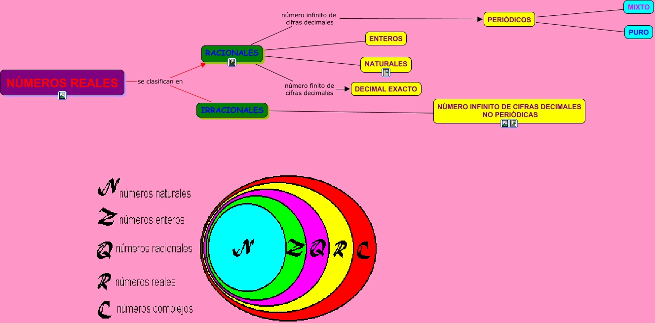 Este Cmap, tiene información relacionada con: Clasificación de los Números Reales, RACIONALES ???? NATURALES, PERIÓDICOS ???? MIXTO, RACIONALES número infinito de cifras decimales PERIÓDICOS, PERIÓDICOS ???? PURO, IRRACIONALES ???? NÚMERO INFINITO DE CIFRAS DECIMALES NO PERIÓDICAS, RACIONALES número finito de cifras decimales DECIMAL EXACTO, RACIONALES ???? ENTEROS, NÚMEROS REALES se clasifican en IRRACIONALES, NÚMEROS REALES se clasifican en RACIONALES