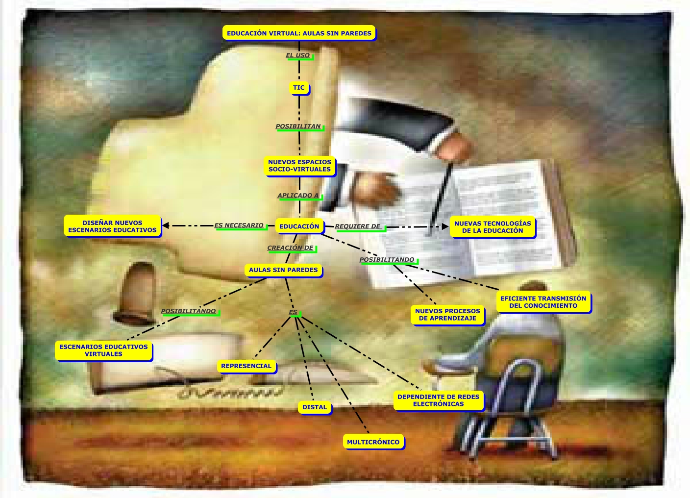 Este Cmap, tiene información relacionada con: EDUCACIÓN VIRTUAL, AULA SIN PAREDES, AULAS SIN PAREDES ES DEPENDIENTE DE REDES ELECTRÓNICAS, EDUCACIÓN POSIBILITANDO NUEVOS PROCESOS DE APRENDIZAJE, NUEVOS ESPACIOS SOCIO-VIRTUALES APLICADO A EDUCACIÓN, EDUCACIÓN CREACIÓN DE AULAS SIN PAREDES, AULAS SIN PAREDES ES REPRESENCIAL, AULAS SIN PAREDES ES DISTAL, AULAS SIN PAREDES ES MULTICRÓNICO, AULAS SIN PAREDES POSIBILITANDO ESCENARIOS EDUCATIVOS VIRTUALES, EDUCACIÓN REQUIERE DE NUEVAS TECNOLOGÍAS DE LA EDUCACIÓN, EDUCACIÓN VIRTUAL: AULAS SIN PAREDES EL USO TIC, EDUCACIÓN POSIBILITANDO EFICIENTE TRANSMISIÓN DEL CONOCIMIENTO, TIC POSIBILITAN NUEVOS ESPACIOS SOCIO-VIRTUALES, EDUCACIÓN ES NECESARIO DISEÑAR NUEVOS ESCENARIOS EDUCATIVOS