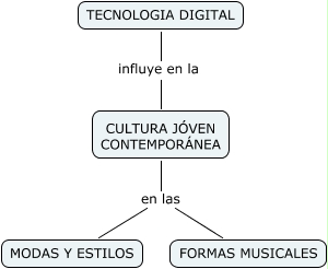 Este Cmap, tiene información relacionada con: TECNOLOGIA1, CULTURA JÓVEN CONTEMPORÁNEA en las MODAS Y ESTILOS, CULTURA JÓVEN CONTEMPORÁNEA en las FORMAS MUSICALES, TECNOLOGIA DIGITAL influye en la CULTURA JÓVEN CONTEMPORÁNEA