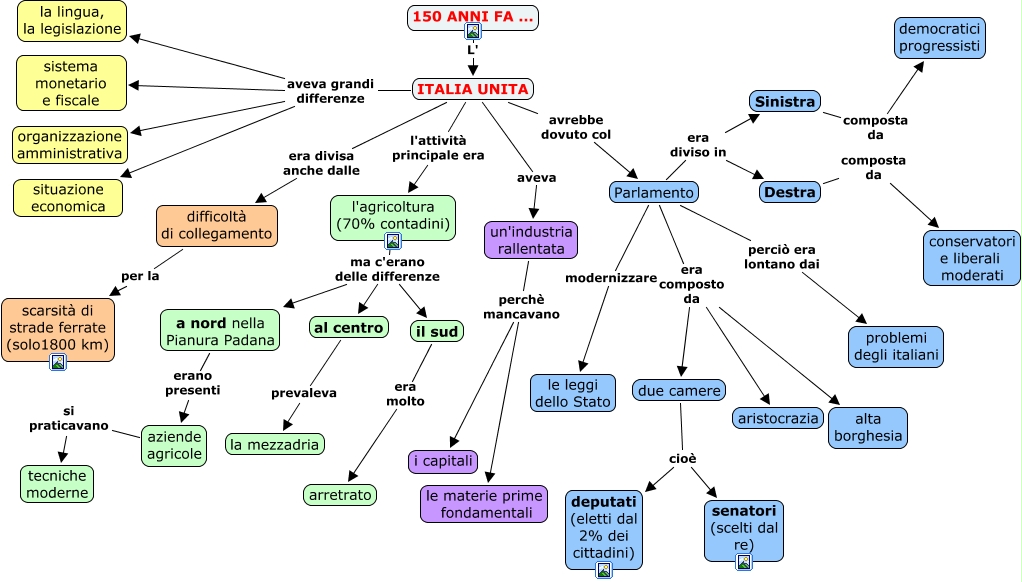 ITALIA UNITA, un'industria rallentata perchè mancavano i capitali, Sinistra composta da democratici progressisti, ITALIA UNITA aveva grandi differenze sistema monetario e fiscale, ITALIA UNITA aveva grandi differenze situazione economica, difficoltà di collegamento per la scarsità di strade ferrate (solo1800 km), ITALIA UNITA aveva grandi differenze la lingua, la legislazione, aziende agricole si praticavano tecniche moderne, l'agricoltura (70% contadini) ma c'erano delle differenze a nord nella Pianura Padana, Parlamento era diviso in Destra, l'agricoltura (70% contadini) ma c'erano delle differenze al centro