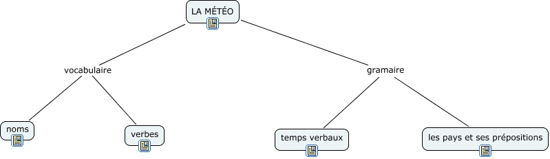Este Cmap, tiene información relacionada con: la météo, LA MÉTÉO gramaire temps verbaux, LA MÉTÉO vocabulaire noms, LA MÉTÉO gramaire les pays et ses prépositions, LA MÉTÉO vocabulaire verbes