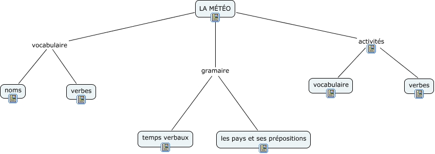 Este Cmap, tiene información relacionada con: temps libre, LA MÉTÉO gramaire temps verbaux, LA MÉTÉO vocabulaire noms, LA MÉTÉO activités vocabulaire, LA MÉTÉO vocabulaire verbes, LA MÉTÉO gramaire les pays et ses prépositions, LA MÉTÉO activités verbes