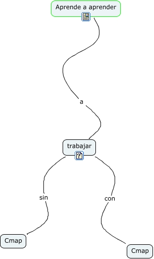 Este Cmap, tiene información relacionada con: Aprende a aprender, Aprende a aprender a trabajar, trabajar sin Cmap, trabajar con Cmap