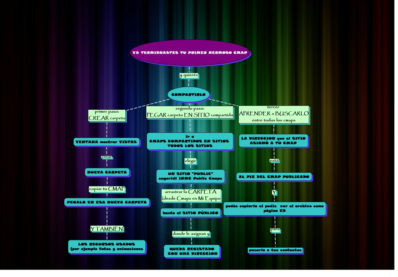 Este mapa conceptual tiene información relacionada a: yaissel, LA DIRECCION que el SITIO ASIGNÒ A TU CMAP està AL PIE DEL CMAP PUBLICADO, COMPARTIRLO tercer APRENDER a BUSCARLO entre todos los cmaps LA DIRECCION que el SITIO ASIGNÒ A TU CMAP, YA TERMIBNASTES TU PRIMER HERMOSO CMAP y quierès COMPARTIRLO, AL PIE DEL CMAP PUBLICADO Y podès copiarla si pedìs ver el archivo como pàgina EB, ir a CMAPS COMPARTIDOS EN SITIOS TODOS LOS SITIOS elegir UN SITIO "PUBLIC" sugeridi IHMC Public Cmaps, COMPARTIRLO primer paso: CREAR carpeta VENTANA mostrar VISTAS, hasta el SITIO PÙBLICO donde le asignan y QUEDA REGISTADO CON UNA DIRECCION, COMPARTIRLO segundo paso: PEGAR carpeta EN SITIO compartido ir a CMAPS COMPARTIDOS EN SITIOS TODOS LOS SITIOS, NUEVA CARPETA copiar tu CMAP PEGALO EN ESA NUEVA CARPETA, podès copiarla si pedìs ver el archivo como pàgina EB para pasarla a tus contactos, VENTANA mostrar VISTAS crear NUEVA CARPETA, UN SITIO "PUBLIC" sugeridi IHMC Public Cmaps arrastrar la CARPETA (desde Cmaps en Mi Equipo hasta el SITIO PÙBLICO, PEGALO EN ESA NUEVA CARPETA Y TAMBIÈN LOS RECURSOS USADOS (por ejemplo fotos y animaciones