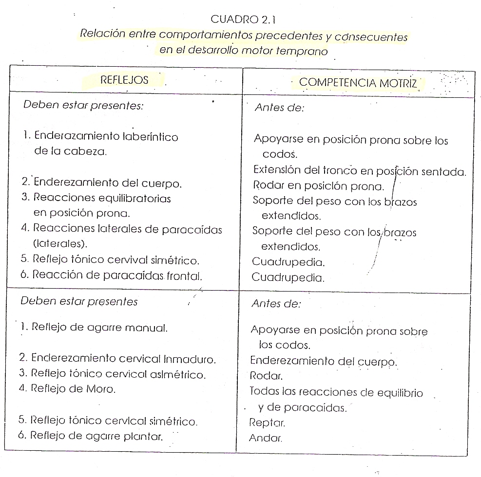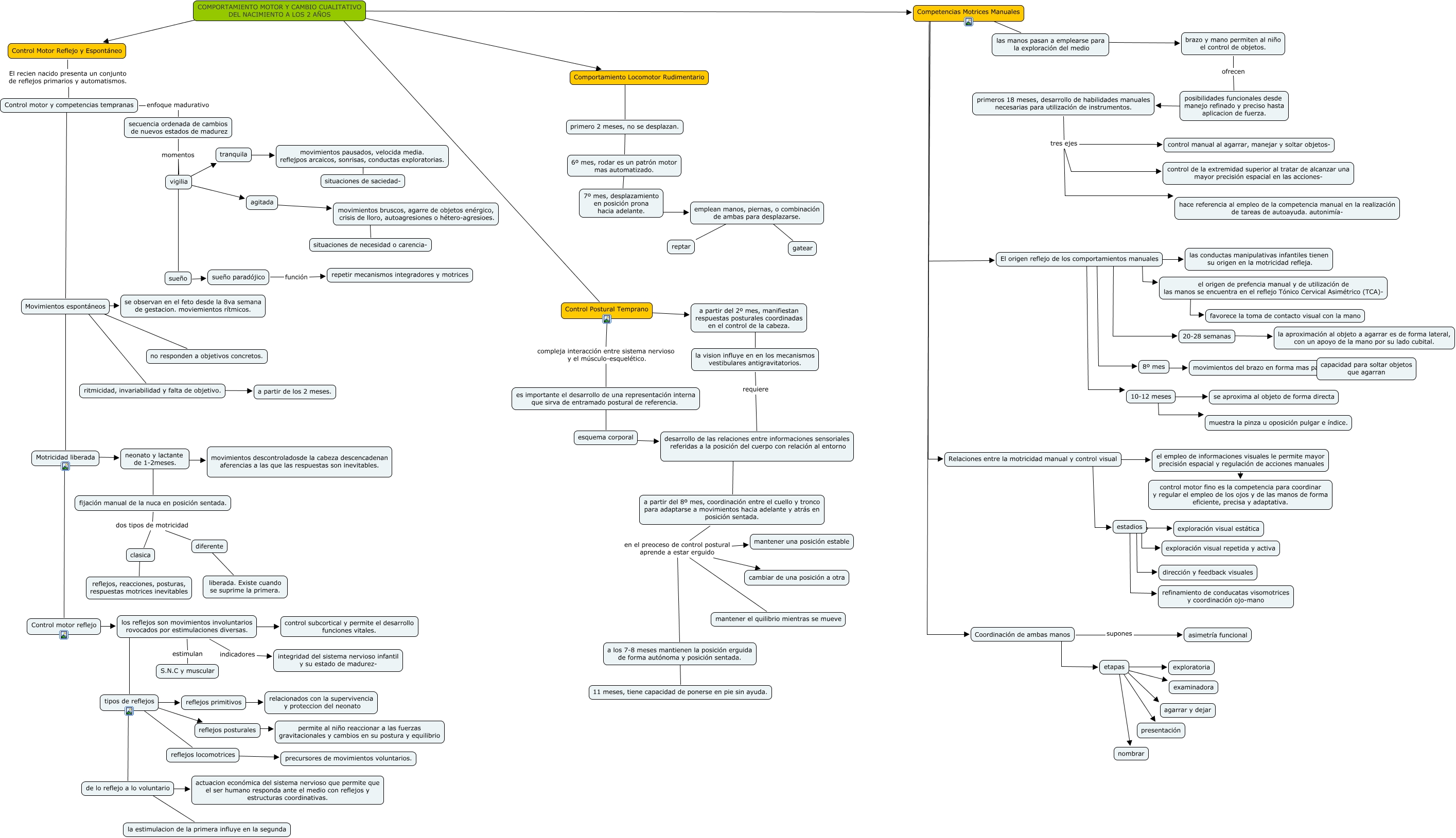 Este Cmap, tiene información relacionada con: cap 2, a partir del 8º mes, coordinación entre el cuello y tronco para adaptarse a movimientos hacia adelante y atrás en posición sentada. en el preoceso de control postural aprende a estar erguido mantener una posición estable, movimientos pausados, velocida media. reflejpos arcaicos, sonrisas, conductas exploratorias. ???? situaciones de saciedad-, Control Postural Temprano ???? a partir del 2º mes, manifiestan respuestas posturales coordinadas en el control de la cabeza., estadios ???? refinamiento de conducatas visomotrices y coordinación ojo-mano, a partir del 2º mes, manifiestan respuestas posturales coordinadas en el control de la cabeza. ???? la vision influye en en los mecanismos vestibulares antigravitatorios., movimientos bruscos, agarre de objetos enérgico, crisis de lloro, autoagresiones o hétero-agresioes. ???? situaciones de necesidad o carencia-, neonato y lactante de 1-2meses. ???? movimientos descontroladosde la cabeza descencadenan aferencias a las que las respuestas son inevitables., Coordinación de ambas manos ???? etapas, estadios ???? exploración visual estática, a los 7-8 meses mantienen la posición erguida de forma autónoma y posición sentada. ???? 11 meses, tiene capacidad de ponerse en pie sin ayuda., secuencia ordenada de cambios de nuevos estados de madurez momentos sueño, el empleo de informaciones visuales le permite mayor precisión espacial y regulación de acciones manuales ???? control motor fino es la competencia para coordinar y regular el empleo de los ojos y de las manos de forma eficiente, precisa y adaptativa., etapas ???? agarrar y dejar, tipos de reflejos ???? reflejos locomotrices, secuencia ordenada de cambios de nuevos estados de madurez momentos vigilia, El origen reflejo de los comportamientos manuales ???? 20-28 semanas, El origen reflejo de los comportamientos manuales ???? 10-12 meses, los reflejos son movimientos involuntarios rovocados por estimulaciones diversas. ???? control subcortical y permite el desarrollo funciones vitales., sueño paradójico función repetir mecanismos integradores y motrices, COMPORTAMIENTO MOTOR Y CAMBIO CUALITATIVO DEL NACIMIENTO A LOS 2 AÑOS ???? Competencias Motrices Manuales