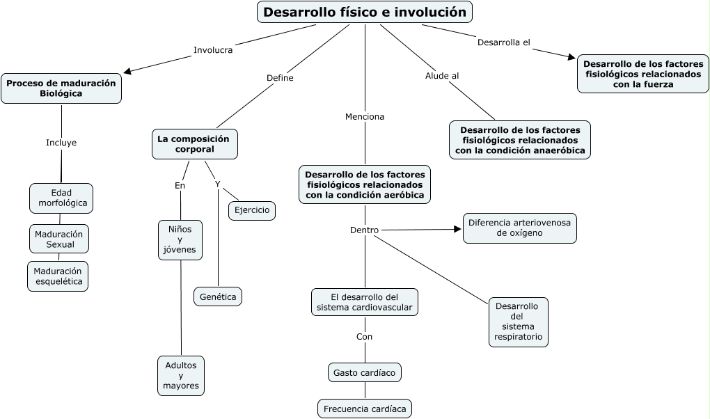 Este Cmap, tiene información relacionada con: 4, Desarrollo físico e involución Define La composición corporal, Desarrollo físico e involución Menciona Desarrollo de los factores fisiológicos relacionados con la condición aeróbica, El desarrollo del sistema cardiovascular Con Frecuencia cardíaca, El desarrollo del sistema cardiovascular Con Gasto cardíaco, Proceso de maduración Biológica Incluye Edad morfológica, Desarrollo de los factores fisiológicos relacionados con la condición aeróbica Dentro El desarrollo del sistema cardiovascular, Proceso de maduración Biológica Incluye Maduración esquelética, Desarrollo físico e involución Alude al Desarrollo de los factores fisiológicos relacionados con la condición anaeróbica, Desarrollo de los factores fisiológicos relacionados con la condición aeróbica Dentro Diferencia arteriovenosa de oxígeno, Desarrollo físico e involución Involucra Proceso de maduración Biológica, La composición corporal En Adultos y mayores, La composición corporal En Niños y jóvenes, La composición corporal Y Ejercicio, Desarrollo físico e involución Desarrolla el Desarrollo de los factores fisiológicos relacionados con la fuerza, Desarrollo de los factores fisiológicos relacionados con la condición aeróbica Dentro Desarrollo del sistema respiratorio, La composición corporal Y Genética