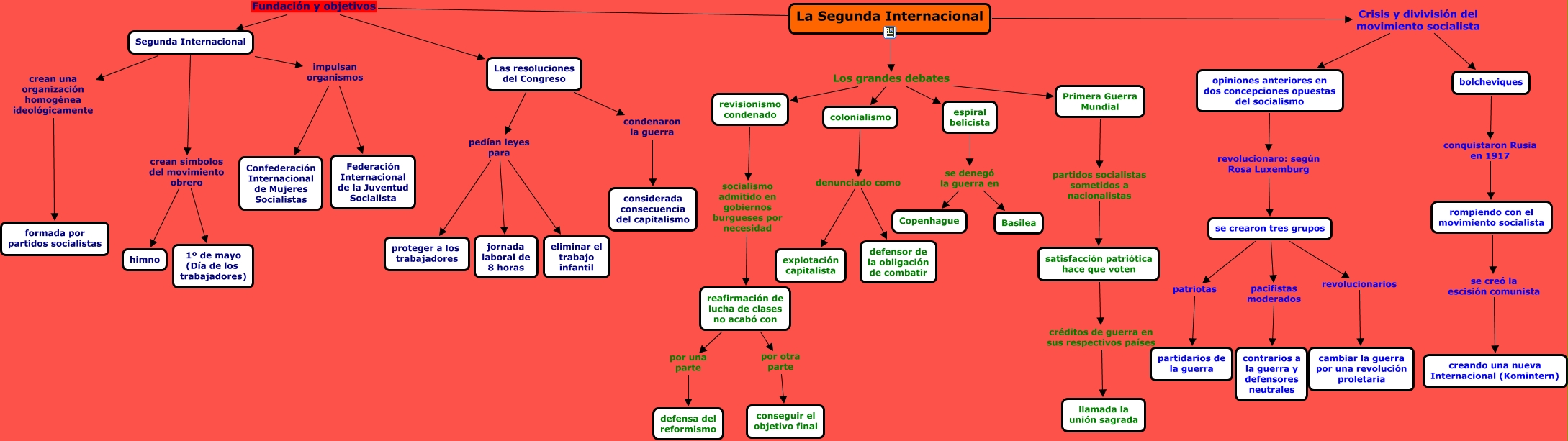 Este Cmap, tiene información relacionada con: punto 5, reafirmación de lucha de clases no acabó con por una parte defensa del reformismo, se crearon tres grupos patriotas partidarios de la guerra, La Segunda Internacional Crisis y divivisión del movimiento socialista bolcheviques, Segunda Internacional impulsan organismos Federación Internacional de la Juventud Socialista, La Segunda Internacional Los grandes debates Primera Guerra Mundial, Segunda Internacional crean una organización homogénea ideológicamente formada por partidos socialistas, La Segunda Internacional Fundación y objetivos Segunda Internacional, se crearon tres grupos revolucionarios cambiar la guerra por una revolución proletaria, Segunda Internacional crean símbolos del movimiento obrero 1º de mayo (Día de los trabajadores), La Segunda Internacional Fundación y objetivos Las resoluciones del Congreso, Las resoluciones del Congreso condenaron la guerra considerada consecuencia del capitalismo, Segunda Internacional crean símbolos del movimiento obrero himno, reafirmación de lucha de clases no acabó con por otra parte conseguir el objetivo final, La Segunda Internacional Los grandes debates colonialismo, Las resoluciones del Congreso pedían leyes para eliminar el trabajo infantil, opiniones anteriores en dos concepciones opuestas del socialismo revolucionaro: según Rosa Luxemburg se crearon tres grupos, Las resoluciones del Congreso pedían leyes para proteger a los trabajadores, Las resoluciones del Congreso pedían leyes para jornada laboral de 8 horas, satisfacción patriótica hace que voten créditos de guerra en sus respectivos países llamada la unión sagrada, La Segunda Internacional Los grandes debates revisionismo condenado