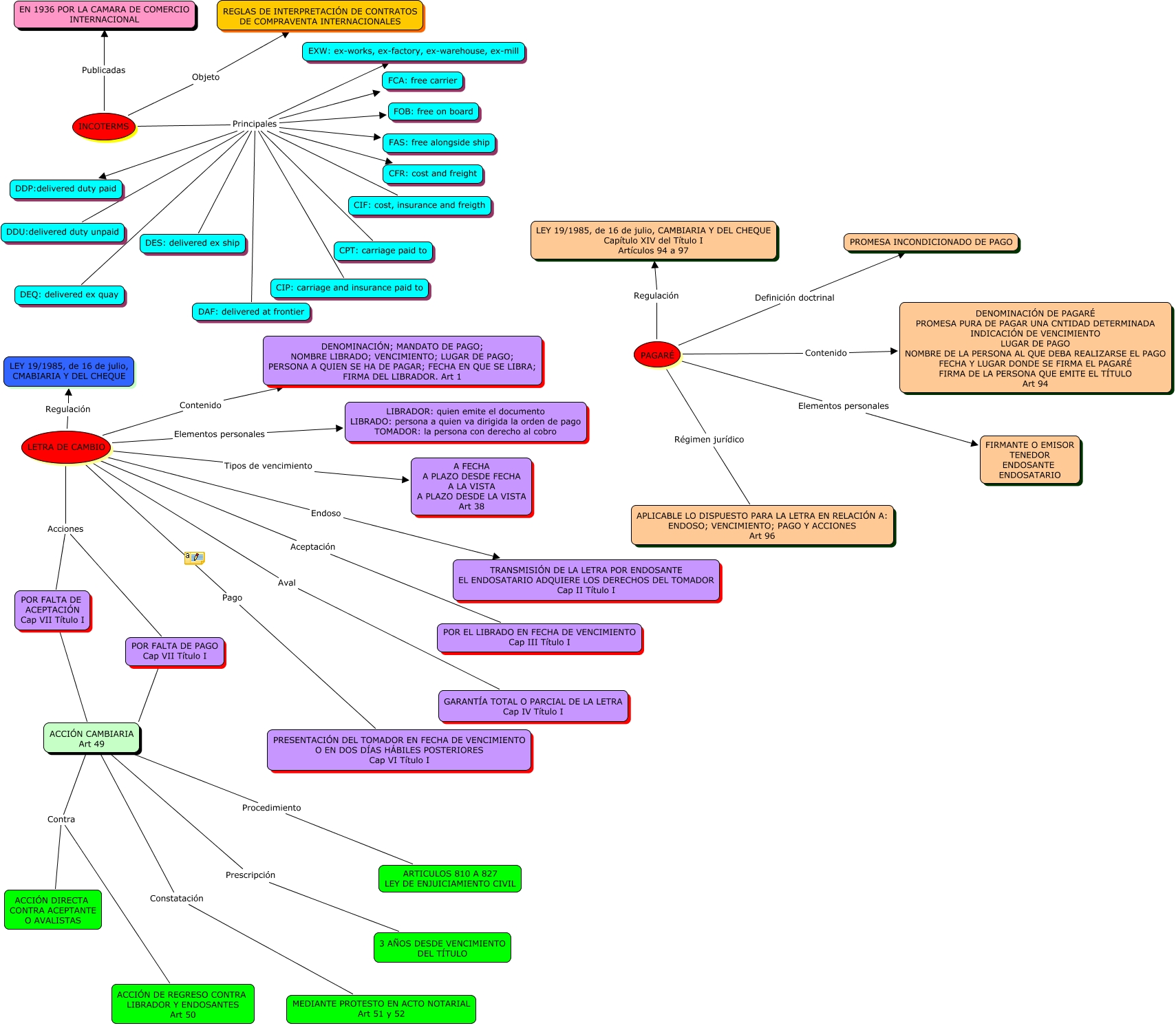 Aquest mapa conceptual conté informació relacionada amb: Mapa IV. Merca III, INCOTERMS Principales FCA: free carrier, INCOTERMS Principales DDP:delivered duty paid, INCOTERMS Principales CIF: cost, insurance and freigth, INCOTERMS Principales EXW: ex-works, ex-factory, ex-warehouse, ex-mill, PAGARÉ Regulación LEY 19/1985, de 16 de julio, CAMBIARIA Y DEL CHEQUE Capítulo XIV del Título I Artículos 94 a 97, LETRA DE CAMBIO Regulación LEY 19/1985, de 16 de julio, CMABIARIA Y DEL CHEQUE, LETRA DE CAMBIO Acciones POR FALTA DE ACEPTACIÓN Cap VII Título I, LETRA DE CAMBIO Aceptación POR EL LIBRADO EN FECHA DE VENCIMIENTO Cap III Título I, INCOTERMS Principales DEQ: delivered ex quay, ACCIÓN CAMBIARIA Art 49 Constatación MEDIANTE PROTESTO EN ACTO NOTARIAL Art 51 y 52, LETRA DE CAMBIO Tipos de vencimiento A FECHA A PLAZO DESDE FECHA A LA VISTA A PLAZO DESDE LA VISTA Art 38, INCOTERMS Publicadas EN 1936 POR LA CAMARA DE COMERCIO INTERNACIONAL, LETRA DE CAMBIO Pago PRESENTACIÓN DEL TOMADOR EN FECHA DE VENCIMIENTO O EN DOS DÍAS HÁBILES POSTERIORES Cap VI Título I, PAGARÉ Contenido DENOMINACIÓN DE PAGARÉ PROMESA PURA DE PAGAR UNA CNTIDAD DETERMINADA INDICACIÓN DE VENCIMIENTO LUGAR DE PAGO NOMBRE DE LA PERSONA AL QUE DEBA REALIZARSE EL PAGO FECHA Y LUGAR DONDE SE FIRMA EL PAGARÉ FIRMA DE LA PERSONA QUE EMITE EL TÍTULO Art 94, INCOTERMS Principales FAS: free alongside ship, ACCIÓN CAMBIARIA Art 49 Prescripción 3 AÑOS DESDE VENCIMIENTO DEL TÍTULO, INCOTERMS Principales DDU:delivered duty unpaid, PAGARÉ Elementos personales FIRMANTE O EMISOR TENEDOR ENDOSANTE ENDOSATARIO, LETRA DE CAMBIO Aval GARANTÍA TOTAL O PARCIAL DE LA LETRA Cap IV Título I, INCOTERMS Principales CIP: carriage and insurance paid to