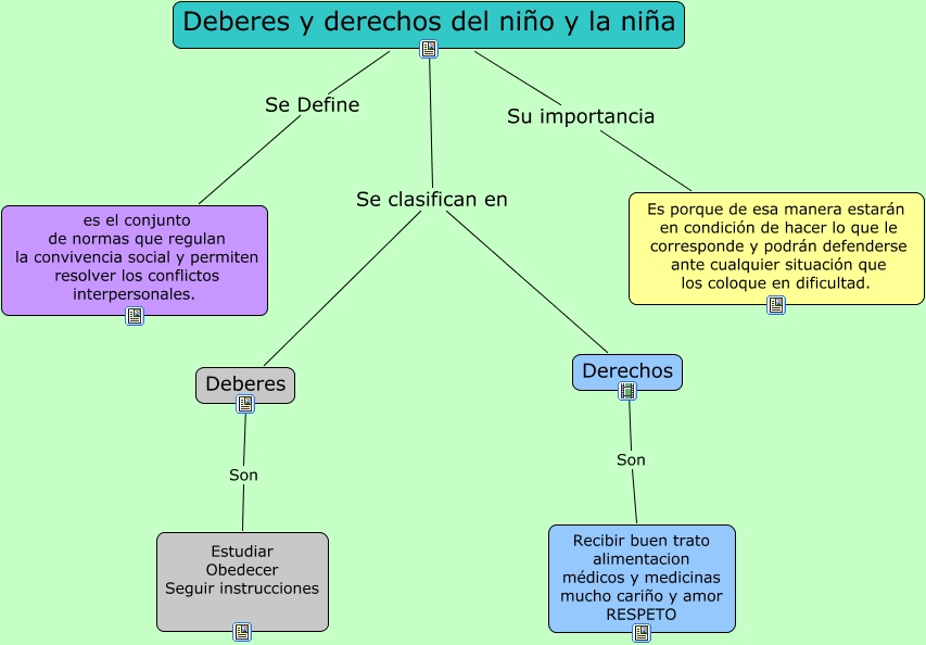 Este mapa conceptual tiene información relacionada a: derechos de los niños, Deberes y derechos del niño y la niña Su importancia Es porque de esa manera estarán en condición de hacer lo que le corresponde y podrán defenderse ante cualquier situación que los coloque en dificultad., Deberes y derechos del niño y la niña Se clasifican en Derechos, Deberes y derechos del niño y la niña Se Define es el conjunto de normas que regulan la convivencia social y permiten resolver los conflictos interpersonales., Derechos Son Recibir buen trato alimentacion médicos y medicinas mucho cariño y amor RESPETO, Deberes Son Estudiar Obedecer Seguir instrucciones, Deberes y derechos del niño y la niña Se clasifican en Deberes