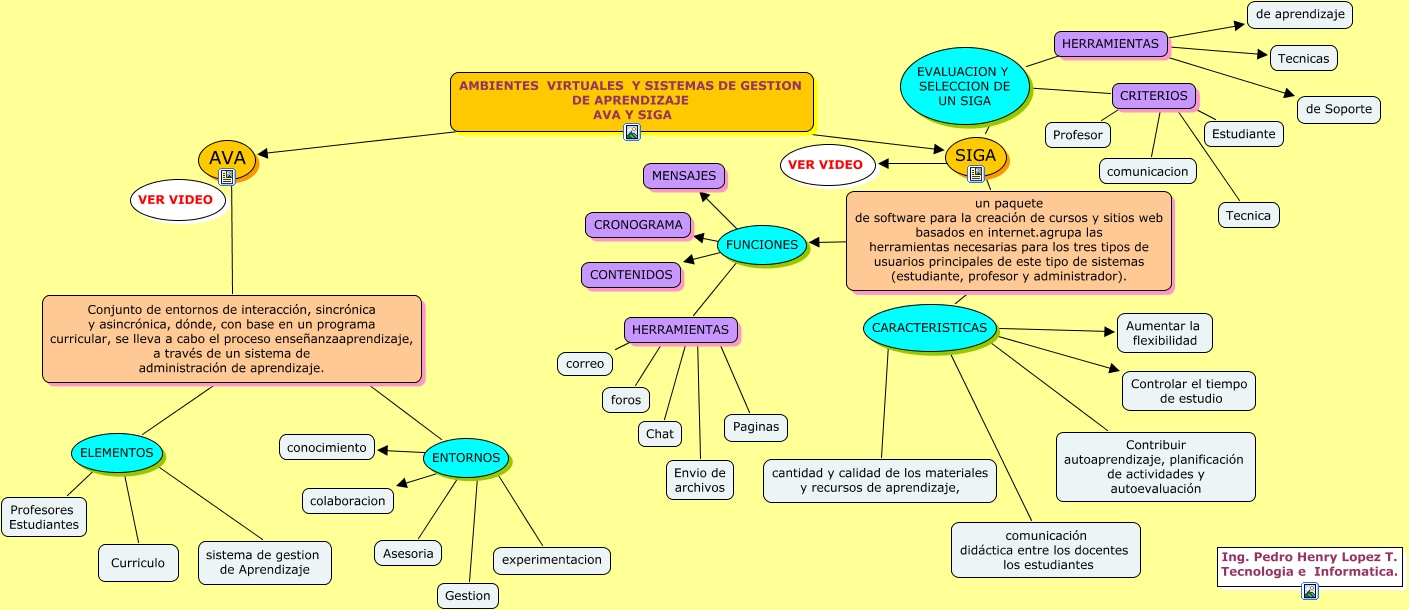Este mapa conceptual tiene información relacionada a: AMBIENTES VIRTUALES Y SISTEMAS DE GESTION, CARACTERISTICAS ???? cantidad y calidad de los materiales y recursos de aprendizaje,, SIGA ???? VER VIDEO, EVALUACION Y SELECCION DE UN SIGA ???? HERRAMIENTAS, SIGA ???? EVALUACION Y SELECCION DE UN SIGA, CARACTERISTICAS ???? Controlar el tiempo de estudio, FUNCIONES ???? MENSAJES, CRITERIOS ???? EVALUACION Y SELECCION DE UN SIGA, AMBIENTES VIRTUALES Y SISTEMAS DE GESTION DE APRENDIZAJE AVA Y SIGA ???? SIGA, HERRAMIENTAS ???? correo, un paquete de software para la creación de cursos y sitios web basados en internet.agrupa las herramientas necesarias para los tres tipos de usuarios principales de este tipo de sistemas (estudiante, profesor y administrador). ???? FUNCIONES