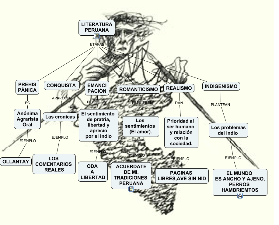 Este Cmap, tiene información relacionada con: literatura peruana, Anònima Agrarista Oral EJEMPLO OLLANTAY, Prioridad al ser humano y relaciòn con la sociedad. EJEMPLO PAGINAS LIBRES,AVE SIN NID, El sentimiento de pratria, libertad y aprecio por el indio EJEMPLO ODA A LIBERTAD, Los sentimientos (El amor). EJEMPLO ACUERDATE DE MI. TRADICIONES PERUANA, INDIGENISMO ETAPAS EMANCI PACIÒN, LITERATURA PERUANA ETAPAS PREHIS PÀNICA, INDIGENISMO ETAPAS ROMANTICISMO, LITERATURA PERUANA ETAPAS CONQUISTA, REALISMO DAN Prioridad al ser humano y relaciòn con la sociedad., Los problemas del indio EJEMPLO EL MUNDO ES ANCHO Y AJENO, PERROS HAMBRIEMTOS, INDIGENISMO ETAPAS REALISMO, Las cronicas EJEMPLO LOS COMENTARIOS REALES, PREHIS PÀNICA ES Anònima Agrarista Oral, INDIGENISMO ETAPAS PREHIS PÀNICA, LITERATURA PERUANA ETAPAS ROMANTICISMO, LITERATURA PERUANA ETAPAS EMANCI PACIÒN, INDIGENISMO ETAPAS CONQUISTA, CONQUISTA APARECEN Las cronicas, EMANCI PACIÒN PROMUEBE El sentimiento de pratria, libertad y aprecio por el indio, ROMANTICISMO PREFIEREN Los sentimientos (El amor).