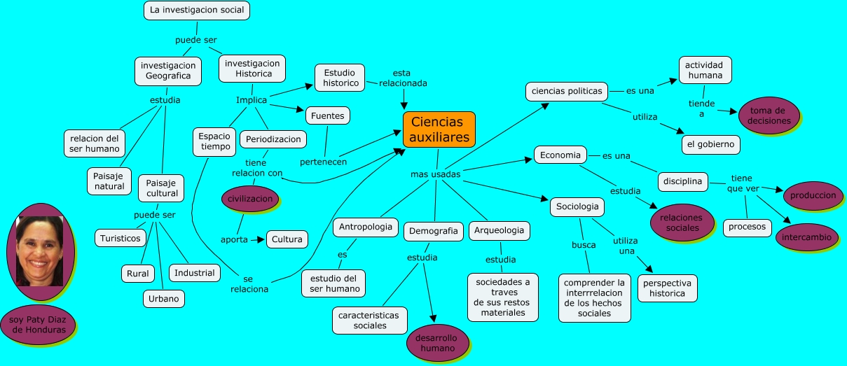 Este Cmap, tiene información relacionada con: la investigacion social, ciencias politicas utiliza el gobierno, investigacion Geografica estudia Paisaje natural, La investigacion social puede ser investigacion Geografica, Espacio tiempo se relaciona Ciencias auxiliares, Periodizacion tiene relacion con civilizacion, Sociologia busca comprender la interrrelacion de los hechos sociales, Ciencias auxiliares mas usadas ciencias politicas, Demografia estudia desarrollo humano, La investigacion social puede ser investigacion Historica, Paisaje cultural puede ser Urbano, Economia es una disciplina, disciplina tiene que ver produccion, Arqueologia estudia sociedades a traves de sus restos materiales, Ciencias auxiliares mas usadas Economia, investigacion Geografica estudia Paisaje cultural, investigacion Historica Implica Fuentes, investigacion Historica Implica Periodizacion, Economia estudia relaciones sociales, investigacion Geografica estudia relacion del ser humano, Ciencias auxiliares mas usadas Sociologia