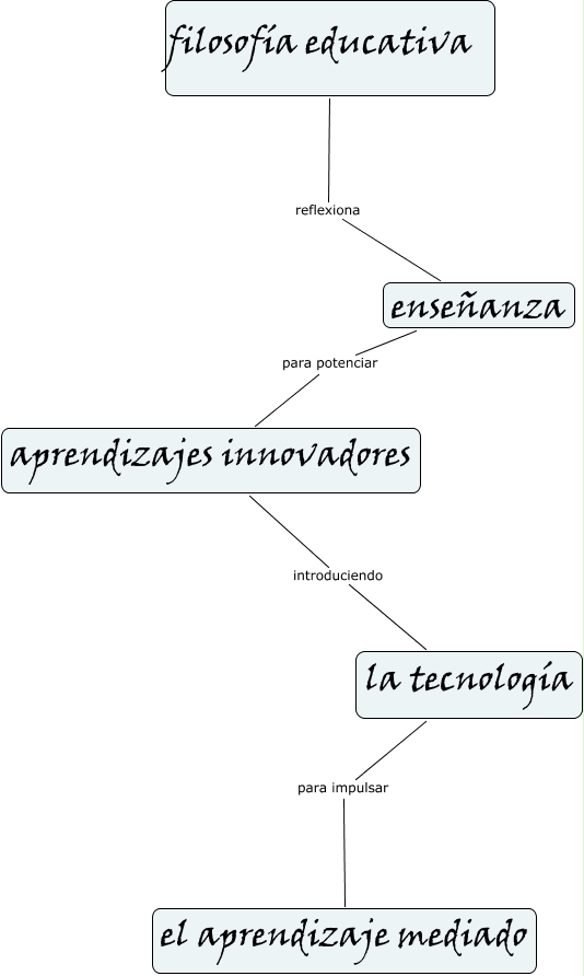 Este Cmap, tiene información relacionada con: lilian y carla-carla 2009, aprendizajes innovadores introduciendo la tecnología, filosofía educativa reflexiona enseñanza, enseñanza para potenciar aprendizajes innovadores, la tecnología para impulsar el aprendizaje mediado