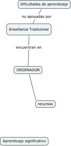 Este Cmap, tiene información relacionada con: Olga Damonte y Maria del Carmen-2009, Enseñanza Tradicional encuentran en ORDENADOR, dificultades de aprendizaje no apoyadas por Enseñanza Tradicional, ORDENADOR recursos