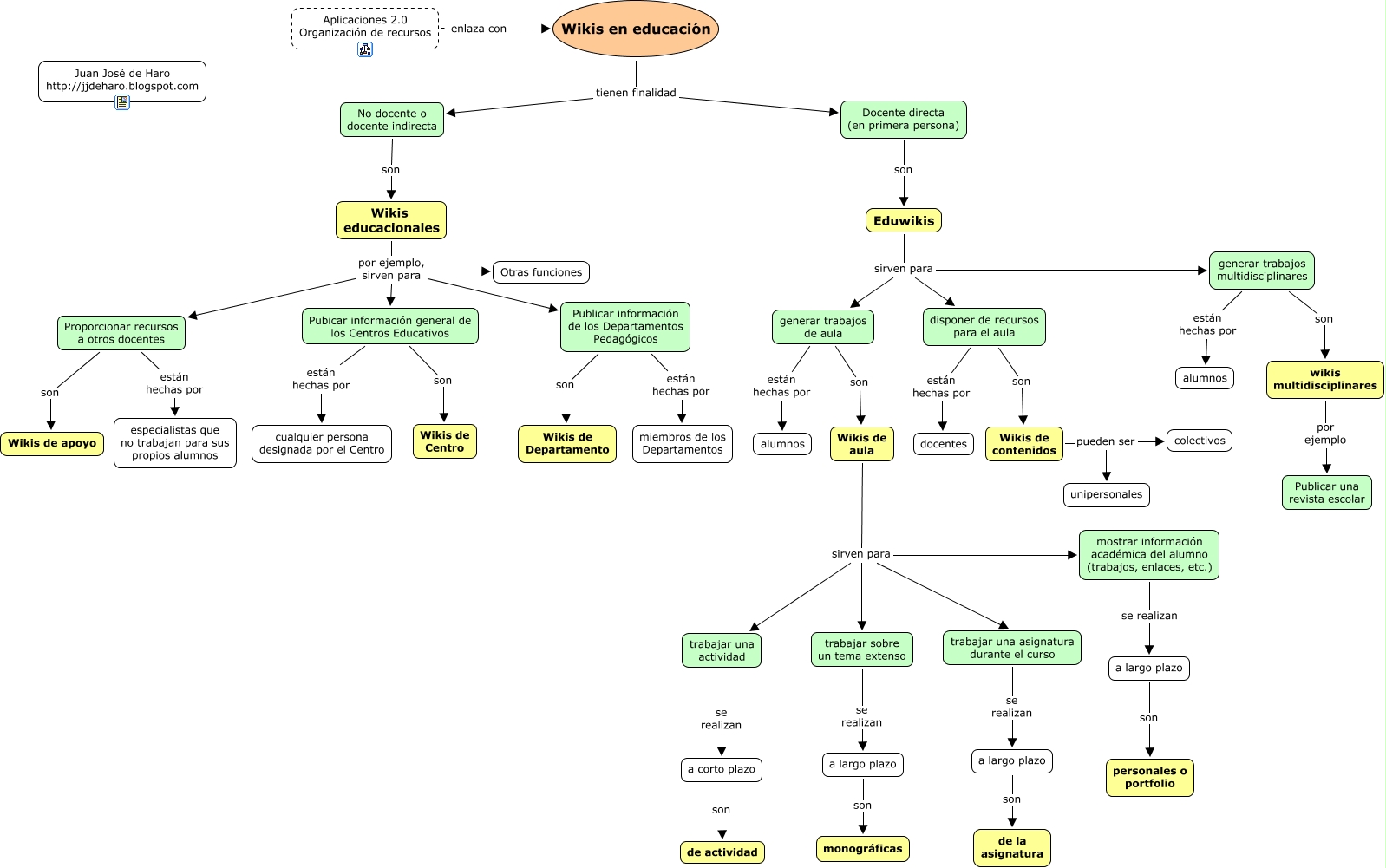 Este Cmap, tiene información relacionada con: wikis educativas, Wikis en educación tienen finalidad No docente o docente indirecta, Eduwikis sirven para disponer de recursos para el aula, Publicar información de los Departamentos Pedagógicos son Wikis de Departamento, Wikis de aula sirven para trabajar una actividad, trabajar una actividad se realizan a corto plazo, generar trabajos de aula son Wikis de aula, disponer de recursos para el aula están hechas por docentes, Wikis en educación tienen finalidad Docente directa (en primera persona), Wikis de contenidos pueden ser unipersonales, generar trabajos multidisciplinares están hechas por alumnos, Proporcionar recursos a otros docentes están hechas por especialistas que no trabajan para sus propios alumnos, Aplicaciones 2.0 Organización de recursos enlaza con Wikis en educación, Wikis de contenidos pueden ser colectivos, trabajar sobre un tema extenso se realizan a largo plazo, trabajar una asignatura durante el curso se realizan a largo plazo, Wikis educacionales por ejemplo, sirven para Proporcionar recursos a otros docentes, Wikis de aula sirven para trabajar una asignatura durante el curso, a largo plazo son de la asignatura, Eduwikis sirven para generar trabajos de aula, Pubicar información general de los Centros Educativos están hechas por cualquier persona designada por el Centro