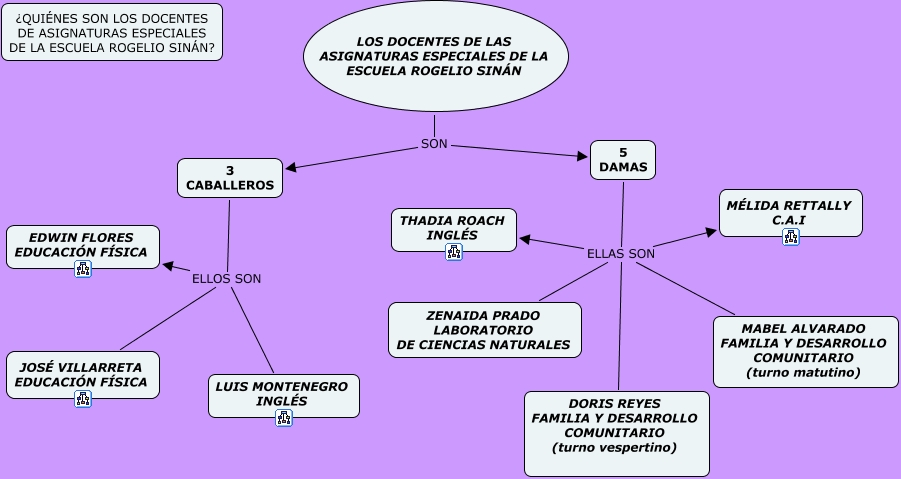 Este Cmap, tiene información relacionada con: DOCENTES DE ASIG ESPECIALES, 5 DAMAS ELLAS SON ZENAIDA PRADO LABORATORIO DE CIENCIAS NATURALES, 3 CABALLEROS ELLOS SON EDWIN FLORES EDUCACIÓN FÍSICA, 5 DAMAS ELLAS SON DORIS REYES FAMILIA Y DESARROLLO COMUNITARIO (turno vespertino), LOS DOCENTES DE LAS ASIGNATURAS ESPECIALES DE LA ESCUELA ROGELIO SINÁN SON 5 DAMAS, 5 DAMAS ELLAS SON MABEL ALVARADO FAMILIA Y DESARROLLO COMUNITARIO (turno matutino), 3 CABALLEROS ELLOS SON JOSÉ VILLARRETA EDUCACIÓN FÍSICA, 3 CABALLEROS ELLOS SON LUIS MONTENEGRO INGLÉS, 5 DAMAS ELLAS SON THADIA ROACH INGLÉS, LOS DOCENTES DE LAS ASIGNATURAS ESPECIALES DE LA ESCUELA ROGELIO SINÁN SON 3 CABALLEROS, 5 DAMAS ELLAS SON MÉLIDA RETTALLY C.A.I