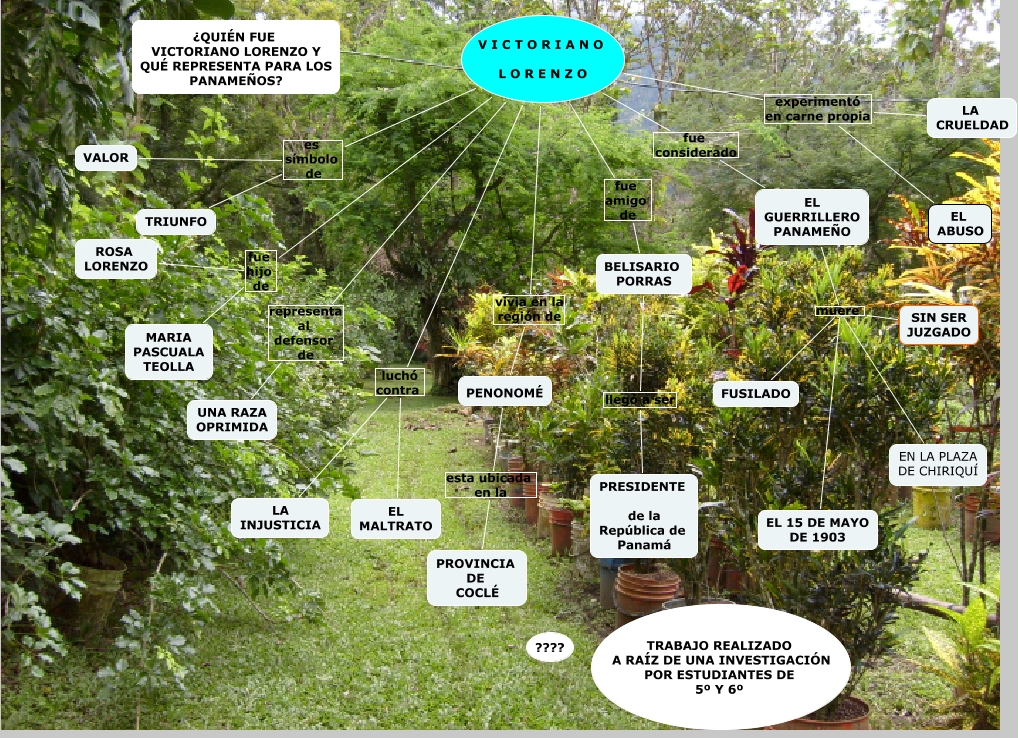 Este Cmap, tiene información relacionada con: VICTORIANO LORENZO, EL GUERRILLERO PANAMEÑO muere EL 15 DE MAYO DE 1903, EL MALTRATO luchó contra LA INJUSTICIA, V I C T O R I A N O L O R E N Z O luchó contra LA INJUSTICIA, V I C T O R I A N O L O R E N Z O fue hijo de ROSA LORENZO, BELISARIO PORRAS llegó a ser PRESIDENTE de la República de Panamá, EL GUERRILLERO PANAMEÑO muere EN LA PLAZA DE CHIRIQUÍ, V I C T O R I A N O L O R E N Z O representa al defensor de UNA RAZA OPRIMIDA, PENONOMÉ esta ubicada en la PROVINCIA DE COCLÉ, V I C T O R I A N O L O R E N Z O experimentó en carne propia LA CRUELDAD, V I C T O R I A N O L O R E N Z O vivia en la región de PENONOMÉ, V I C T O R I A N O L O R E N Z O es símbolo de VALOR, V I C T O R I A N O L O R E N Z O fue amigo de BELISARIO PORRAS, V I C T O R I A N O L O R E N Z O fue considerado EL GUERRILLERO PANAMEÑO, V I C T O R I A N O L O R E N Z O experimentó en carne propia EL ABUSO, V I C T O R I A N O L O R E N Z O es símbolo de TRIUNFO, V I C T O R I A N O L O R E N Z O fue hijo de MARIA PASCUALA TEOLLA, EL GUERRILLERO PANAMEÑO muere FUSILADO, EL GUERRILLERO PANAMEÑO muere SIN SER JUZGADO