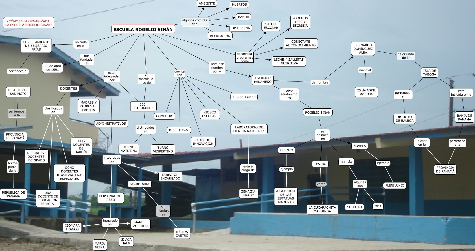 Este Cmap, tiene información relacionada con: Esc R Sinán mod último, ADMINISTRATIVOS integrados por PERSONAL DE ASEO, 600 ESTUDIANTES distribuídos en TURNO VESPERTINO, ESCUELA ROGELIO SINÁN fue fundada el 25 de abril de 1991, ROGELIO SINÁN se destacó en NOVELA, PERSONAL DE ASEO integrado por SILVIA JAÉN, ESCUELA ROGELIO SINÁN cuenta con 4 PABELLONES, ESCUELA ROGELIO SINÁN esta integrada por MADRES Y PADRES DE FAMILIA, ESCUELA ROGELIO SINÁN algunos comités son BANDA, BAHÍA DE PANAMÁ pertenece a la PROVINCIA DE PANAMÁ, CUENTO ejemplo A LA ORILLA DE LAS ESTATUAS MADURAS, BERNARDO DOMÍNGUEZ ALBA es oriundo de la ISLA DE TABOGA, ESCUELA ROGELIO SINÁN cuenta con AULA DE INNOVACIÓN, ESCUELA ROGELIO SINÁN ubicada en el CORREGIMIENTO DE BELISARIO FRÍAS, ADMINISTRATIVOS integrados por DIRECTOR ENCARGADO, SECRETARIA su nombre es NÉLIDA CASTRO, BERNARDO DOMÍNGUEZ ALBA nació el 25 de ABRIL de 1904, ESCUELA ROGELIO SINÁN algunos comités son RECREACIÓN, ROGELIO SINÁN se destacó en POESÍA, ESCUELA ROGELIO SINÁN su matricula es de 600 ESTUDIANTES, ESCUELA ROGELIO SINÁN cuenta con LABORATORIO DE CIENCIA NATURALES