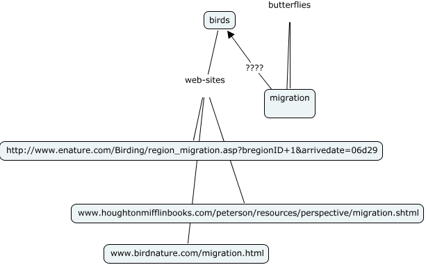 This Concept Map, created with IHMC CmapTools, has information related to: Migration, ???? ???? birds, birds web-sites http://www.enature.com/Birding/region_migration.asp?bregionID+1&arrivedate=06d29, birds web-sites www.birdnature.com/migration.html, birds web-sites www.houghtonmifflinbooks.com/peterson/resources/perspective/migration.shtml, migration butterflies ????