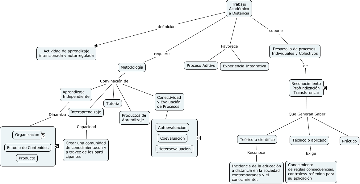 This Concept Map, created with IHMC CmapTools, has information related to: Metodologia del trabajo academico, Teórico o científico Reconoce Incidencia de la educación a distancia en la sociedad contemporanea y el conocimiento., Trabajo Académico a Distancia supone Desarrollo de procesos Individuales y Colectivos, Metodología Convinación de Tutoria, Conectividad y Evaluación de Procesos ???? ????, Metodología Convinación de Interaprendizaje, Reconocimiento Profundización Transferencia Que Generan Saber Teórico o científico, Trabajo Académico a Distancia definición Actividad de aprendizaje intencionada y autorregulada, Metodología Convinación de Conectividad y Evaluación de Procesos, Metodología Convinación de Productos de Aprendizaje, Técnico o aplicado Exige Conocimiento de reglas consecuencias, controlesy reflexion para su aplicación, Trabajo Académico a Distancia requiere Metodología, Trabajo Académico a Distancia Favorece Experiencia Integrativa, Reconocimiento Profundización Transferencia Que Generan Saber Práctico, Trabajo Académico a Distancia Favorece Proceso Aditivo, Desarrollo de procesos Individuales y Colectivos de Actividades Meta-cognitivas, Aprendizaje Independiente Dinamiza ????, Interaprendizaje Capacidad Crear una comunidad de conocimientocon y a travez de los parti- cipantes, Metodología Convinación de Aprendizaje Independiente, Reconocimiento Profundización Transferencia Que Generan Saber Técnico o aplicado