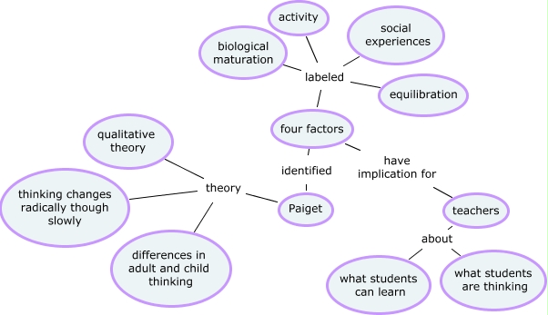 This Concept Map, created with IHMC CmapTools, has information related to: Piaget, teachers about what students are thinking, four factors labeled biological maturation, Paiget theory thinking changes radically though slowly, four factors have implication for teachers, Paiget identified four factors, four factors labeled equilibration, Paiget theory qualitative theory, teachers about what students can learn, four factors labeled activity, Paiget theory differences in adult and child thinking, four factors labeled social experiences