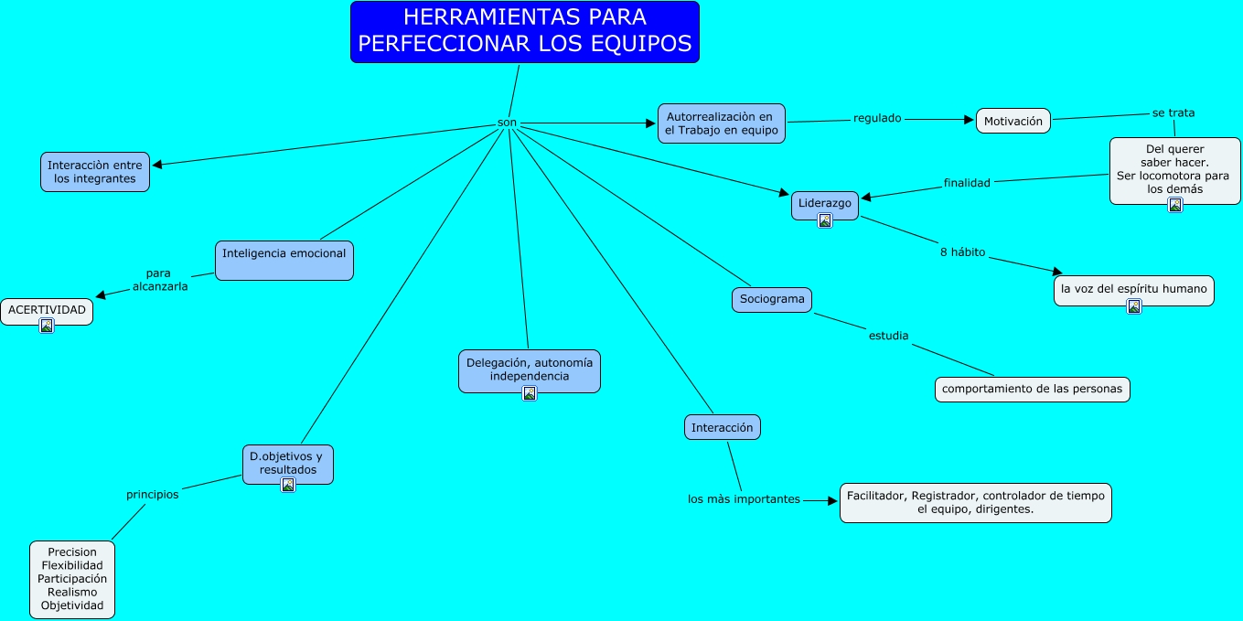 Este Cmap, tiene información relacionada con: heramientas capitulo 2, HERRAMIENTAS PARA PERFECCIONAR LOS EQUIPOS son Sociograma, HERRAMIENTAS PARA PERFECCIONAR LOS EQUIPOS son D.objetivos y resultados, Inteligencia emocional para alcanzarla ACERTIVIDAD, Autorrealizaciòn en el Trabajo en equipo regulado Motivación, HERRAMIENTAS PARA PERFECCIONAR LOS EQUIPOS son Delegación, autonomía independencia, HERRAMIENTAS PARA PERFECCIONAR LOS EQUIPOS son Interacción, D.objetivos y resultados principios Precision Flexibilidad Participación Realismo Objetividad, HERRAMIENTAS PARA PERFECCIONAR LOS EQUIPOS son Inteligencia emocional, Motivación se trata Del querer saber hacer. Ser locomotora para los demás, HERRAMIENTAS PARA PERFECCIONAR LOS EQUIPOS son Liderazgo, HERRAMIENTAS PARA PERFECCIONAR LOS EQUIPOS son Interacciòn entre los integrantes, Sociograma estudia comportamiento de las personas, Del querer saber hacer. Ser locomotora para los demás finalidad Liderazgo, Interacción los màs importantes Facilitador, Registrador, controlador de tiempo el equipo, dirigentes., HERRAMIENTAS PARA PERFECCIONAR LOS EQUIPOS son Autorrealizaciòn en el Trabajo en equipo, Liderazgo 8 hábito la voz del espíritu humano