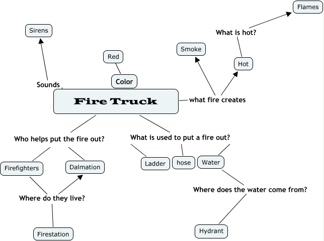 This Concept Map, created with IHMC CmapTools, has information related to: Untitled 1, Fire Truck Who helps put the fire out? Dalmation, Firefighters Where do they live? Firestation, Firefighters Where do they live? Dalmation, Water What is used to put a fire out? hose, Fire Truck what fire creates Hot, Fire Truck Sounds Sirens, Fire Truck what fire creates Smoke, Ladder What is used to put a fire out? hose, Water Where does the water come from? Hydrant, Red ???? Color, Hot What is hot? Flames, Fire Truck Who helps put the fire out? Firefighters, Fire Truck What is used to put a fire out? hose