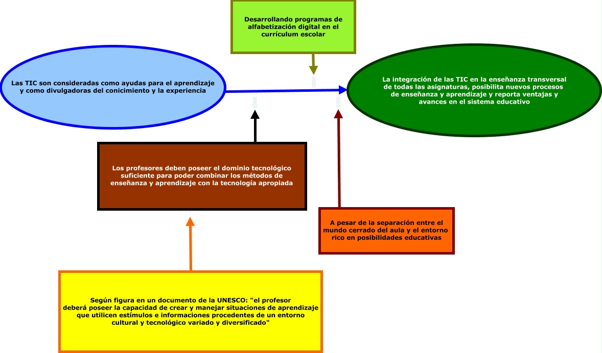 Este Cmap, tiene información relacionada con: Villar_Riu_Inma, Las TIC son consideradas como ayudas para el aprendizaje y como divulgadoras del conicimiento y la experiencia ???? ????, Las TIC son consideradas como ayudas para el aprendizaje y como divulgadoras del conicimiento y la experiencia ???? ????, Desarrollando programas de alfabetización digital en el currículum escolar ????, Los profesores deben poseer el dominio tecnológico suficiente para poder combinar los métodos de enseñanza y aprendizaje con la tecnología apropiada ????, A pesar de la separación entre el mundo cerrado del aula y el entorno rico en posibilidades educativas ????, Según figura en un documento de la UNESCO: "el profesor deberá poseer la capacidad de crear y manejar situaciones de aprendizaje que utilicen estímulos e informaciones procedentes de un entorno cultural y tecnológico variado y diversificado" ????