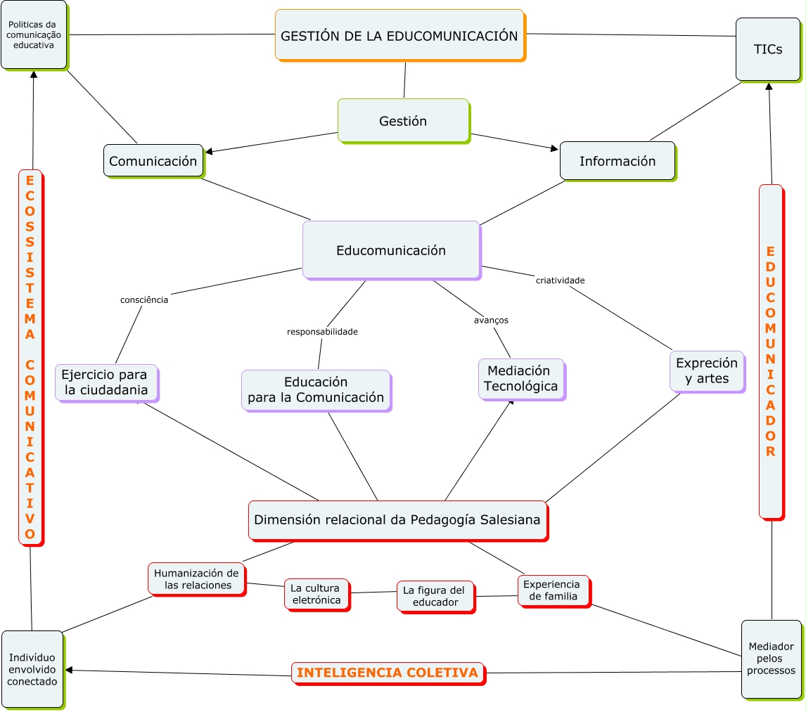 Esse mapa conceitual, produzido no IHMC CmapTools, tem a informação relacionada a: Gestão em Educomunicação, GESTIÓN DE LA EDUCOMUNICACIÓN ???? Gestión, Educomunicación responsabilidade Educación para la Comunicación, Educomunicación consciência Ejercicio para la ciudadania, La figura del educador ???? Experiencia de familia, Humanización de las relaciones ???? La cultura eletrónica, INTELIGENCIA COLETIVA ???? Indivíduo envolvido conectado, Dimensión relacional da Pedagogía Salesiana ???? Experiencia de familia, Politicas da comunicação educativa ???? ????, Comunicación ???? Educomunicación, Dimensión relacional da Pedagogía Salesiana ???? ????, Expreción y artes ???? Dimensión relacional da Pedagogía Salesiana, E C O S S I S T E M A C O M U N I C A T I V O ???? Politicas da comunicação educativa, Educomunicación avanços Mediación Tecnológica, Gestión ???? Información, INTELIGENCIA COLETIVA ???? ????, Gestión ???? Comunicación, E D U C O M U N I C A D O R ???? Mediador pelos processos, Información ???? ????, Dimensión relacional da Pedagogía Salesiana ???? ????, La cultura eletrónica ???? La figura del educador