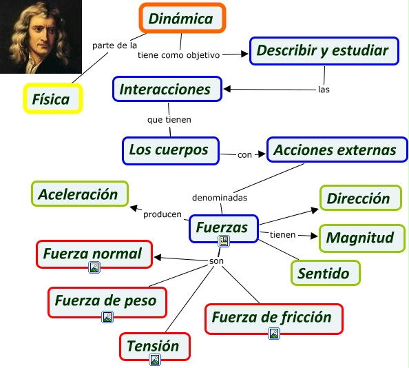 Este Cmap, tiene información relacionada con: dinamica, Fuerzas son Tensión, Interacciones que tienen Los cuerpos, Fuerzas son Fuerza de fricción, Fuerzas son Tensión, Fuerzas son Fuerza de peso, Fuerzas producen Aceleración, Dinámica parte de la Física, Dinámica tiene como objetivo Describir y estudiar, Fuerzas ???? Sentido, Fuerzas son Fuerza de peso, Los cuerpos con Acciones externas, Fuerzas son Fuerza de fricción, Fuerzas son Fuerza normal, Acciones externas denominadas Fuerzas, Fuerzas ???? Dirección, Fuerzas tienen Magnitud, Fuerzas son Fuerza normal, Describir y estudiar las Interacciones
