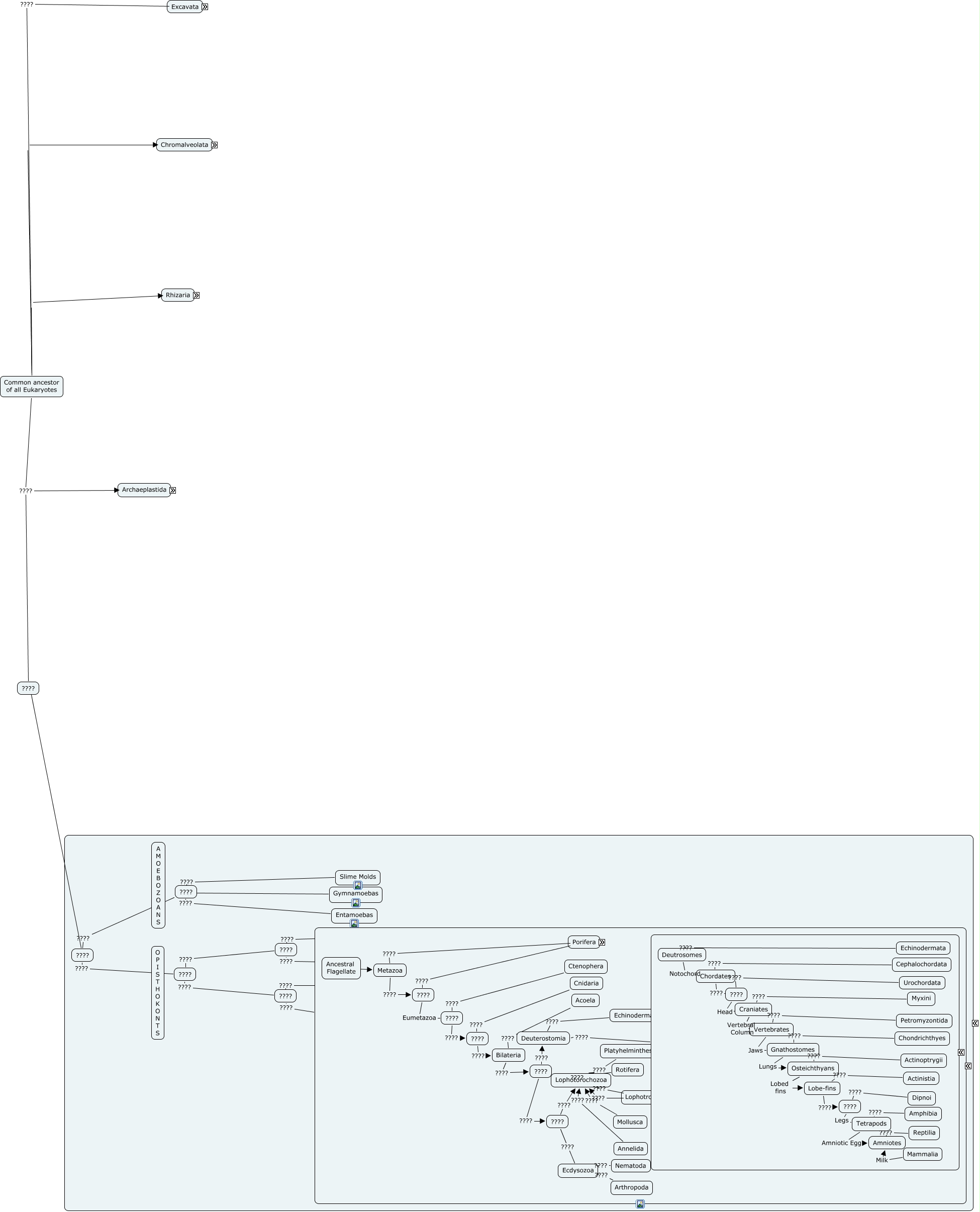 This Concept Map, created with IHMC CmapTools, has information related to: Eukaryotes Will Mellish, Choanoflagellates ???? ????, Animals ???? ????, Echinodermata ???? Deutrosomes, Reptilia ???? Amniotes, Chordata ???? Deuterostomia, Chlorarachniphytes ???? ????, ???? ???? ????, Apicomplexans ???? ????, Urochordata ???? ????, Liverworts ???? Ancestral Green Algae, Deutrosomes Notochord Chordates, Chondrichthyes ???? Gnathostomes, Calcarea ???? ????, Myxini ???? Craniates, ???? ???? ????, ???? ???? ????, ???? ???? ????, Mosses ???? ????, Slime Molds ???? ????, ???? ???? ????
