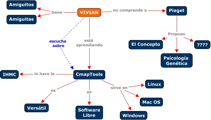 Este Cmap, tiene información relacionada con: VIVIAN, VIVIAN escucha sobre CmapTools, CmapTools es Software Libre, CmapTools sirve en Linux, Piaget Propuso Psicología Genética, Piaget Propuso ????, VIVIAN está aprendiendo CmapTools, CmapTools lo hace la IHMC, VIVIAN tiene Amiguitas, CmapTools sirve en Windows, CmapTools es Versátil, VIVIAN no comprende a Piaget, VIVIAN tiene Amiguitos, CmapTools sirve en Mac OS, Piaget Propuso El Concepto
