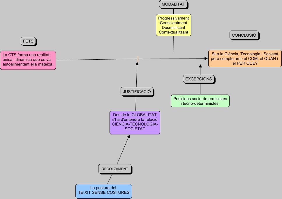 Este Cmap, tiene información relacionada con: Comas_Montse_a-map_síntesi, MODALITAT ???? Progressivament Conscientment Desmitificant Contextualitzant, La postura del TEIXIT SENSE COSTURES RECOLZAMENT Des de la GLOBALITAT s'ha d'entendre la relació CIÈNCIA-TECNOLOGIA- SOCIETAT, Posicions socio-deterministes i tecno-deterministes., Des de la GLOBALITAT s'ha d'entendre la relació CIÈNCIA-TECNOLOGIA- SOCIETAT Sí a la Ciència, Tecnologia i Societat però compte amb el COM, el QUAN i el PER QUÈ?, MODALITAT ????, La CTS forma una realitat única i dinàmica que es va autoalimentant ella mateixa. Sí a la Ciència, Tecnologia i Societat però compte amb el COM, el QUAN i el PER QUÈ?