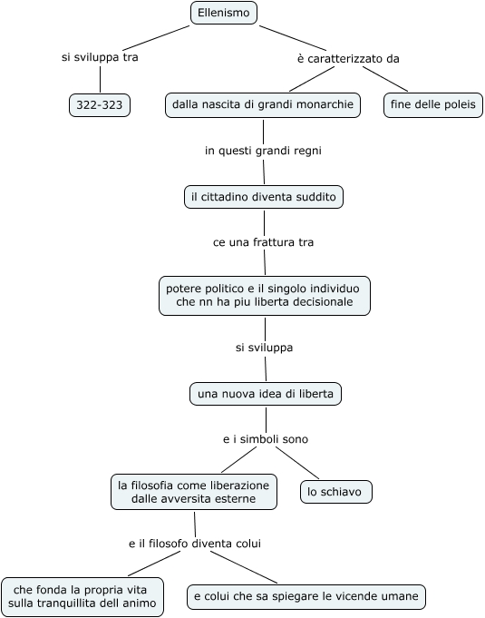 elllenismo-diego, la filosofia come liberazione dalle avversita esterne e il filosofo diventa colui e colui che sa spiegare le vicende umane, la filosofia come liberazione dalle avversita esterne e il filosofo diventa colui che fonda la propria vita sulla tranquillita dell animo, dalla nascita di grandi monarchie in questi grandi regni il cittadino diventa suddito, Ellenismo è caratterizzato da dalla nascita di grandi monarchie, Ellenismo è caratterizzato da fine delle poleis, Ellenismo si sviluppa tra 322-323, potere politico e il singolo individuo che nn ha piu liberta decisionale si sviluppa una nuova idea di liberta, il cittadino diventa suddito ce una frattura tra potere politico e il singolo individuo che nn ha piu liberta decisionale, una nuova idea di liberta e i simboli sono lo schiavo, una nuova idea di liberta e i simboli sono la filosofia come liberazione dalle avversita esterne