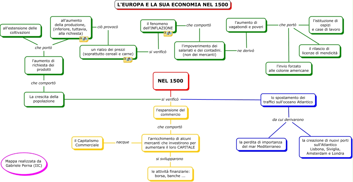Questa Cmap, creata con IHMC CmapTools, contiene informazioni relative a: L'EUROPA E LA SUA ECONOMIA NEL 1500 perna, l'aumento di vagabondi e poveri che portò il rilascio di licenze di mendicità, NEL 1500 si verificò La crescita della popolazione, all'aumento della produzione, (inferiore, tuttavia, alla richiesta) ciò provocò un rialzo dei prezzi (soprattutto cereali e carne), lo spostamento dei traffici sull'oceano Atlantico da cui derivarono la perdita di importanza del mar Mediterraneo, un rialzo dei prezzi (soprattutto cereali e carne) si verificò il fenomeno dell'INFLAZIONE, lo spostamento dei traffici sull'oceano Atlantico da cui derivarono la creazione di nuovi porti sull'Atlantico Lisbona, Siviglia, Amsterdam e Londra, l'impoverimento dei salariati e dei contadini. (non dei mercanti) ne derivò l'aumento di vagabondi e poveri, il fenomeno dell'INFLAZIONE che comportò l'impoverimento dei salariati e dei contadini. (non dei mercanti), l'aumento di vagabondi e poveri che portò l'invio forzato alle colonie americane, l'aumento di vagabondi e poveri che portò l'istituzione di ospizi e case di lavoro, NEL 1500 si verificò l'espansione del commercio, NEL 1500 si verificò lo spostamento dei traffici sull'oceano Atlantico, l'aumento di richiesta dei prodotti che portò all'aumento della produzione, (inferiore, tuttavia, alla richiesta), La crescita della popolazione che comportò l'aumento di richiesta dei prodotti, l'arricchimento di alcuni mercanti che investirono per aumentare il loro CAPITALE nacque il Capitalismo Commerciale, l'aumento di richiesta dei prodotti che portò all'estensione delle coltivazioni, l'espansione del commercio che comportò l'arricchimento di alcuni mercanti che investirono per aumentare il loro CAPITALE, l'arricchimento di alcuni mercanti che investirono per aumentare il loro CAPITALE si svilupparono le attività finanziarie: borsa, banche ...