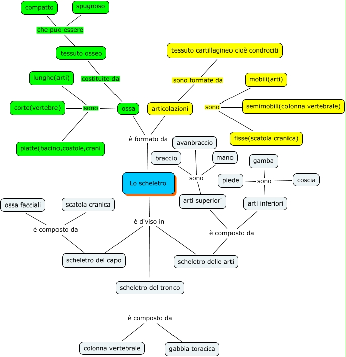 Questa Cmap, creata con IHMC CmapTools, contiene informazioni relative a: Lo scheletro, articolazioni sono semimobili(colonna vertebrale), arti superiori sono avanbraccio, arti inferiori sono gamba, Lo scheletro è diviso in scheletro del tronco, tessuto osseo che puo essere spugnoso, arti inferiori sono piede, scheletro del capo è composto da scatola cranica, arti inferiori sono coscia, ossa sono corte(vertebre), Lo scheletro è formato da articolazioni, scheletro del tronco è composto da colonna vertebrale, ossa sono lunghe(arti), ossa costituite da tessuto osseo, scheletro delle arti è composto da arti inferiori, Lo scheletro è diviso in scheletro del capo, scheletro delle arti è composto da arti superiori, Lo scheletro è formato da ossa, articolazioni sono fisse(scatola cranica), articolazioni sono mobili(arti), arti superiori sono braccio