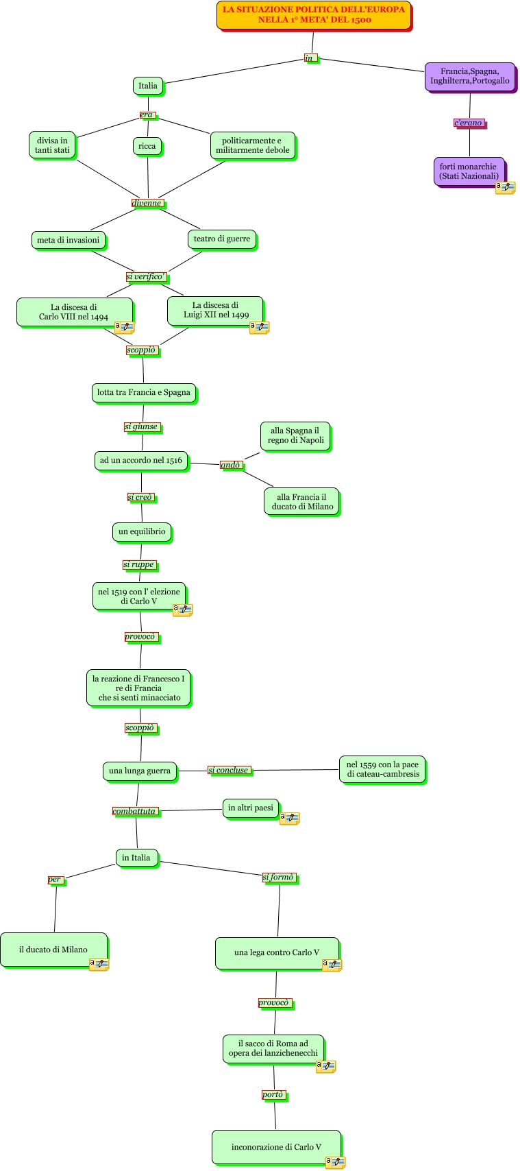 Questa Cmap, creata con IHMC CmapTools, contiene informazioni relative a: la situazine politica dell'Europa (Novielli S.), politicarmente e militarmente debole divenne meta di invasioni, divisa in tanti stati divenne teatro di guerre, LA SITUAZIONE POLITICA DELL'EUROPA NELLA 1° META' DEL 1500 in Francia,Spagna, Inghilterra,Portogallo, in Italia si formò una lega contro Carlo V, LA SITUAZIONE POLITICA DELL'EUROPA NELLA 1° META' DEL 1500 in Italia, La discesa di Carlo VIII nel 1494 scoppiò lotta tra Francia e Spagna, ricca divenne teatro di guerre, lotta tra Francia e Spagna si giunse ad un accordo nel 1516, divisa in tanti stati divenne meta di invasioni, la reazione di Francesco I re di Francia che si sentì minacciato scoppiò una lunga guerra, meta di invasioni si verifico' La discesa di Carlo VIII nel 1494, ad un accordo nel 1516 si creò un equilibrio, il sacco di Roma ad opera dei lanzichenecchi portò inconorazione di Carlo V, una lunga guerra combattuta in Italia, un equilibrio si ruppe nel 1519 con l' elezione di Carlo V, in Italia per il ducato di Milano, una lega contro Carlo V provocò il sacco di Roma ad opera dei lanzichenecchi, Francia,Spagna, Inghilterra,Portogallo c'erano forti monarchie (Stati Nazionali), ad un accordo nel 1516 andò alla Francia il ducato di Milano, teatro di guerre si verifico' La discesa di Luigi XII nel 1499