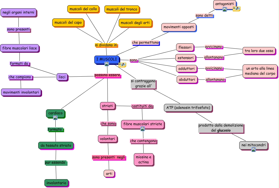 Questa Cmap, creata con IHMC CmapTools, contiene informazioni relative a: IL SISTEMA MUSCOLARE (Rosang.L), striati che sono volontari, volontari sono presenti negli arti, abduttori allontanano un arto alla linea mediana del corpo, movimenti opposti sono detti antagonisti, fibre muscolari lisce sono presenti negli organi interni, adduttori avvicinano un arto alla linea mediana del corpo, I MUSCOLI che permettono movimenti opposti, I MUSCOLI si contraggono grazie all' ATP (adenosin trifosfato), estensori allontanano tra loro due ossa, I MUSCOLI sono estensori, I MUSCOLI si dividono in muscoli del capo, fibre muscolari striate che contengono miosina e actina, I MUSCOLI sono flessori, I MUSCOLI sono abduttori, I MUSCOLI possono essere striati, I MUSCOLI si dividono in muscoli del tronco, I MUSCOLI possono essere lisci, lisci che compiono movimenti involontari, I MUSCOLI si dividono in muscoli degli arti, striati costituiti da fibre muscolari striate