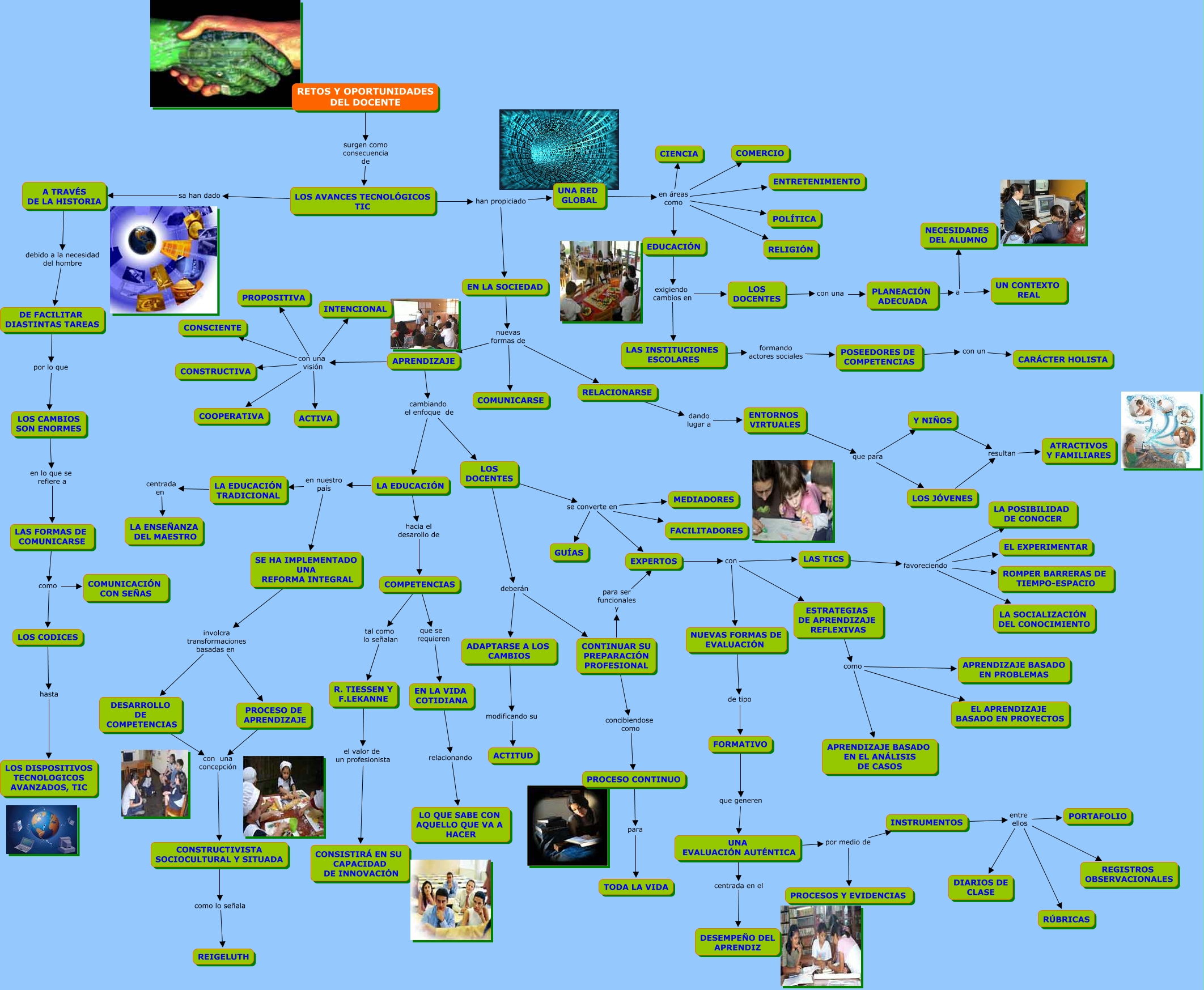 Este Cmap, tiene información relacionada con: RETOS Y OPORTUNIDADES.cmap, INSTRUMENTOS entre ellos DIARIOS DE CLASE, EXPERTOS con NUEVAS FORMAS DE EVALUACIÓN, NUEVAS FORMAS DE EVALUACIÓN de tipo FORMATIVO, CONTINUAR SU PREPARACIÓN PROFESIONAL concibiendose como PROCESO CONTINUO, LOS DOCENTES deberán CONTINUAR SU PREPARACIÓN PROFESIONAL, ESTRATEGIAS DE APRENDIZAJE REFLEXIVAS como APRENDIZAJE BASADO EN EL ANÁLISIS DE CASOS, LAS TICS favoreciendo ROMPER BARRERAS DE TIEMPO-ESPACIO, RELACIONARSE dando lugar a ENTORNOS VIRTUALES, LOS DOCENTES con una PLANEACIÓN ADECUADA, PLANEACIÓN ADECUADA a UN CONTEXTO REAL, LOS CAMBIOS SON ENORMES en lo que se refiere a LAS FORMAS DE COMUNICARSE, LA EDUCACIÓN en nuestro país LA EDUCACIÓN TRADICIONAL, EDUCACIÓN exigiendo cambios en LOS DOCENTES, UNA RED GLOBAL en áreas como RELIGIÓN, R. TIESSEN Y F.LEKANNE el valor de un profesionista CONSISTIRÁ EN SU CAPACIDAD DE INNOVACIÓN, SE HA IMPLEMENTADO UNA REFORMA INTEGRAL involcra transformaciones basadas en DESARROLLO DE COMPETENCIAS, COMPETENCIAS tal como lo señalan R. TIESSEN Y F.LEKANNE, INSTRUMENTOS entre ellos REGISTROS OBSERVACIONALES, COMPETENCIAS que se requieren EN LA VIDA COTIDIANA, LA EDUCACIÓN TRADICIONAL centrada en LA ENSEÑANZA DEL MAESTRO