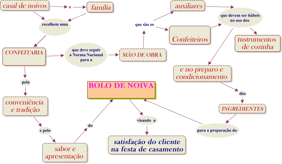 Esse mapa conceitual, produzido no IHMC CmapTools, tem a informação relacionada a: bolo de noiva2, Confeiteiros que devem ser hábeis no uso dos e no preparo e condicionamento, casal de noivos escolhem uma CONFEITARIA, conveniência e tradição e pelo sabor e apresentação, INGREDIENTES para a preparação do BOLO DE NOIVA, sabor e apresentação do BOLO DE NOIVA, MÃO DE OBRA que são os auxiliares, casal de noivos e família, BOLO DE NOIVA visando a satisfação do cliente na festa de casamento, família escolhem uma CONFEITARIA, CONFEITARIA pela conveniência e tradição, CONFEITARIA que deve seguir a Norma Nacional para a MÃO DE OBRA, e no preparo e condicionamento dos INGREDIENTES, auxiliares que devem ser hábeis no uso dos e no preparo e condicionamento, auxiliares que devem ser hábeis no uso dos Instrumentos de cozinha, família escolhem uma CONFEITARIA, casal de noivos escolhem uma CONFEITARIA, MÃO DE OBRA que são os Confeiteiros, família escolhem uma CONFEITARIA, casal de noivos escolhem uma CONFEITARIA, Confeiteiros que devem ser hábeis no uso dos Instrumentos de cozinha