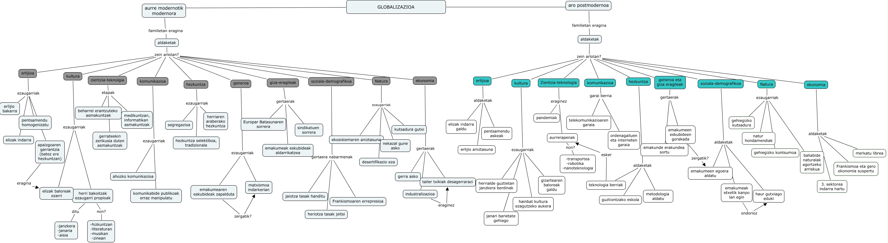 Este Cmap, tiene información relacionada con: sandra, aurre modernotik modernora ???? GLOBALIZAZIOA, aldaketak zein arlotan? Natura, aldaketak zein arlotan? hezkuntza, zientzia-teknolgia etapak beharrei erantzuteko asmakuntzak, hezkuntza ezaugarriak hezkuntza selektiboa, tradizionala, generoa ezaugarriak emakumearen eskubideak zapalduta, aldaketak zein arlotan? generoa eta giza eragileak, soziala-demografikoa gertaera nabarmenak Frankismoaren errepresioa, aro postmodernoa familietan eragina aldaketak, emakumeen eskubideen gorakada zergatik? emakumeen egoera aldatu, erlijioa ezaugarriak elizak indarra, aldaketak zein arlotan? soziala-demografikoa, kultura ezaugarriak elizak baloreak ezarri, hezkuntza aldaketak metodologia aldatu, aldaketak zein arlotan? giza-eragileak, komunikazioa garai berria ordenagailuen eta interneten garaia, soziala-demografikoa aldaketak emakumeak etxetik kanpo lan egin, aurre modernotik modernora familietan eragina aldaketak, apaizgoaren garrantzia (batez ere hezkuntzan) eragina elizak baloreak ezarri, aldaketak zein arlotan? kultura