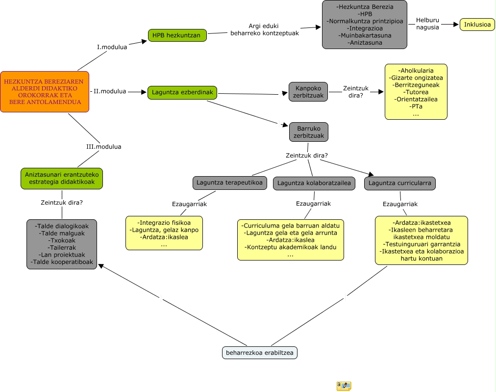 Este Cmap, tiene información relacionada con: ainhoa erostarbe2, Laguntza ezberdinak Barruko zerbitzuak, Barruko zerbitzuak Zeintzuk dira? Laguntza terapeutikoa, beharrezkoa erabiltzea -Talde dialogikoak -Talde malguak -Txokoak -Tailerrak -Lan proiektuak -Talde kooperatiboak, Kanpoko zerbitzuak Zeintzuk dira? -Aholkularia -Gizarte ongizatea -Berritzeguneak -Tutorea -Orientatzailea -PTa ..., Laguntza terapeutikoa Ezaugarriak -Integrazio fisikoa -Laguntza, gelaz kanpo -Ardatza:ikaslea ..., HEZKUNTZA BEREZIAREN ALDERDI DIDAKTIKO OROKORRAK ETA BERE ANTOLAMENDUA III.modulua Aniztasunari erantzuteko estrategia didaktikoak, Laguntza kolaboratzailea Ezaugarriak -Curriculuma gela barruan aldatu -Laguntza gela eta gela arrunta -Ardatza:ikaslea -Kontzeptu akademikoak landu ..., Laguntza ezberdinak Kanpoko zerbitzuak, -Hezkuntza Berezia -HPB -Normalkuntza printzipioa -Integrazioa -Muinbakartasuna -Aniztasuna Helburu nagusia Inklusioa, HEZKUNTZA BEREZIAREN ALDERDI DIDAKTIKO OROKORRAK ETA BERE ANTOLAMENDUA I.modulua HPB hezkuntzan, -Ardatza:ikastetxea -Ikasleen beharretara ikastetxea moldatu -Testuinguruari garrantzia -Ikastetxea eta kolaborazioa hartu kontuan beharrezkoa erabiltzea, Aniztasunari erantzuteko estrategia didaktikoak Zeintzuk dira? -Talde dialogikoak -Talde malguak -Txokoak -Tailerrak -Lan proiektuak -Talde kooperatiboak, HPB hezkuntzan Argi eduki beharreko kontzeptuak -Hezkuntza Berezia -HPB -Normalkuntza printzipioa -Integrazioa -Muinbakartasuna -Aniztasuna, HEZKUNTZA BEREZIAREN ALDERDI DIDAKTIKO OROKORRAK ETA BERE ANTOLAMENDUA II.modulua Laguntza ezberdinak, Barruko zerbitzuak Zeintzuk dira? Laguntza kolaboratzailea, Barruko zerbitzuak Zeintzuk dira? Laguntza curricularra, Laguntza curricularra Ezaugarriak -Ardatza:ikastetxea -Ikasleen beharretara ikastetxea moldatu -Testuinguruari garrantzia -Ikastetxea eta kolaborazioa hartu kontuan