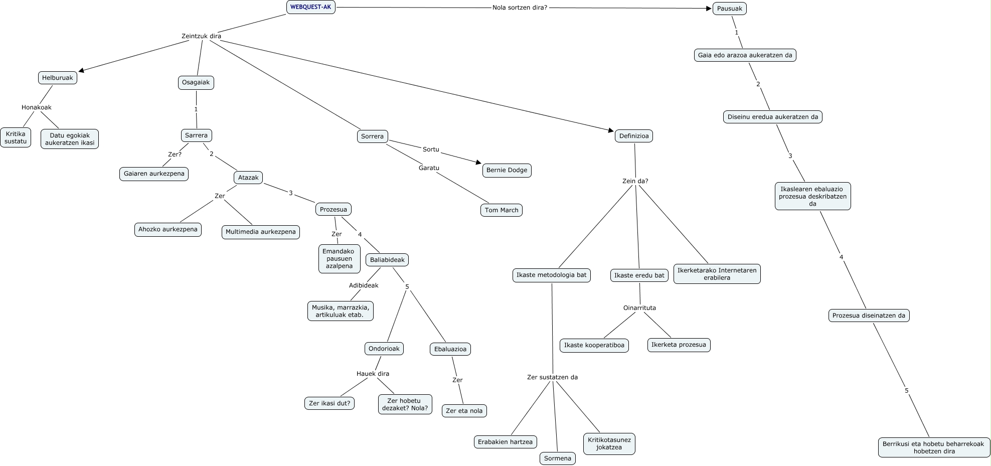 Este Cmap, tiene información relacionada con: Maria Sierra (WEBQUEST-ei buruzko mapa kontzeptuala), WEBQUEST-AK Nola sortzen dira? Pausuak, Prozesua 4 Baliabideak, Definizioa Zein da? Ikerketarako Internetaren erabilera, WEBQUEST-AK Zeintzuk dira Osagaiak, Atazak Zer Ahozko aurkezpena, Ondorioak Hauek dira Zer ikasi dut?, Sorrera Garatu Tom March, WEBQUEST-AK Zeintzuk dira Definizioa, Atazak Zer Multimedia aurkezpena, Definizioa Zein da? Ikaste metodologia bat, Diseinu eredua aukeratzen da 3 Ikaslearen ebaluazio prozesua deskribatzen da, Prozesua diseinatzen da 5 Berrikusi eta hobetu beharrekoak hobetzen dira, Ikaste metodologia bat Zer sustatzen da Sormena, Prozesua Zer Emandako pausuen azalpena, Atazak 3 Prozesua, WEBQUEST-AK Zeintzuk dira Sorrera, Baliabideak Adibideak Musika, marrazkia, artikuluak etab., Sarrera Zer? Gaiaren aurkezpena, Ikaste metodologia bat Zer sustatzen da Kritikotasunez jokatzea, Pausuak 1 Gaia edo arazoa aukeratzen da
