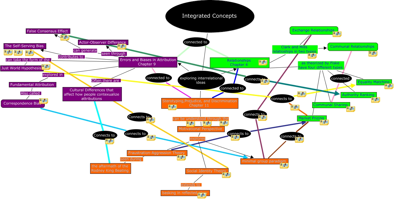 This Concept Map, created with IHMC CmapTools, has information related to: Final CMAP, Communal Relationships connected Communal Sharing, Just World Hypothesis connects to Market Pricing, Errors and Biases in Attribution Chapter 9 contributes to The Self-Serving Bias, Motivational Perspective explores minimal group paradigm, Relationships Chapter 4 connected to Errors and Biases in Attribution Chapter 9, Errors and Biases in Attribution Chapter 9 connected to Sterotyping,Prejudice, and Discrimination Chapter 11, Motivational Perspective explores Social Identity Theory, Market Pricing connects to minimal group paradigm, Exchange Relationships Clark and Mills relatioships in two types Relationships Chapter 4, The Self-Serving Bias Connects to Social Identity Theory, Integrated Concepts exploring interrelational ideas Sterotyping,Prejudice, and Discrimination Chapter 11, Fraustration-Aggression Theory seen during the aftermath of the Rodney King Beating, Relationships Chapter 4 connected to Sterotyping,Prejudice, and Discrimination Chapter 11, Integrated Concepts exploring interrelational ideas Errors and Biases in Attribution Chapter 9, Social Identity Theory extends to basking in reflected glory, False Consensus Effect connects to Authority Ranking, Errors and Biases in Attribution Chapter 9 explored in Fundamental Attribution, Fraustration-Aggression Theory connects to Market Pricing, Sterotyping,Prejudice, and Discrimination Chapter 11 can be understood through the Motivational Perspective, Errors and Biases in Attribution Chapter 9 seen through Actor-Observer Difference