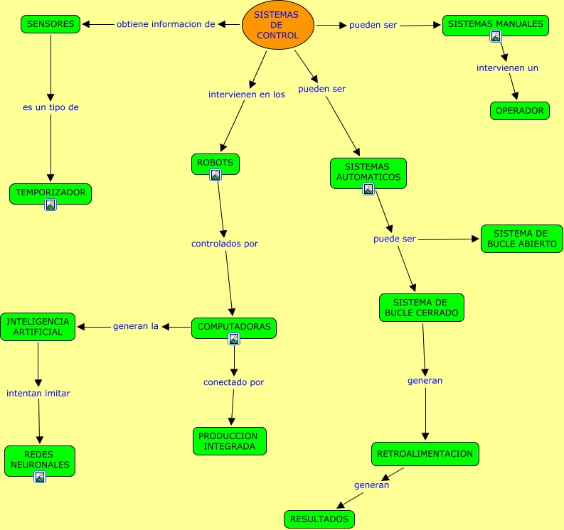 Este Cmap, tiene información relacionada con: TEC CONTROL, INTELIGENCIA ARTIFICIAL intentan imitar REDES NEURONALES, SISTEMAS DE CONTROL obtiene informacion de SENSORES, SISTEMA DE BUCLE CERRADO generan RETROALIMENTACION, SENSORES es un tipo de TEMPORIZADOR, SISTEMAS AUTOMATICOS puede ser SISTEMA DE BUCLE CERRADO, SISTEMAS MANUALES intervienen un OPERADOR, SISTEMAS DE CONTROL pueden ser SISTEMAS MANUALES, COMPUTADORAS generan la INTELIGENCIA ARTIFICIAL, SISTEMAS DE CONTROL intervienen en los ROBOTS, SISTEMAS DE CONTROL pueden ser SISTEMAS AUTOMATICOS, COMPUTADORAS conectado por PRODUCCION INTEGRADA, SISTEMAS AUTOMATICOS puede ser SISTEMA DE BUCLE ABIERTO, RETROALIMENTACION generan RESULTADOS, ROBOTS controlados por COMPUTADORAS